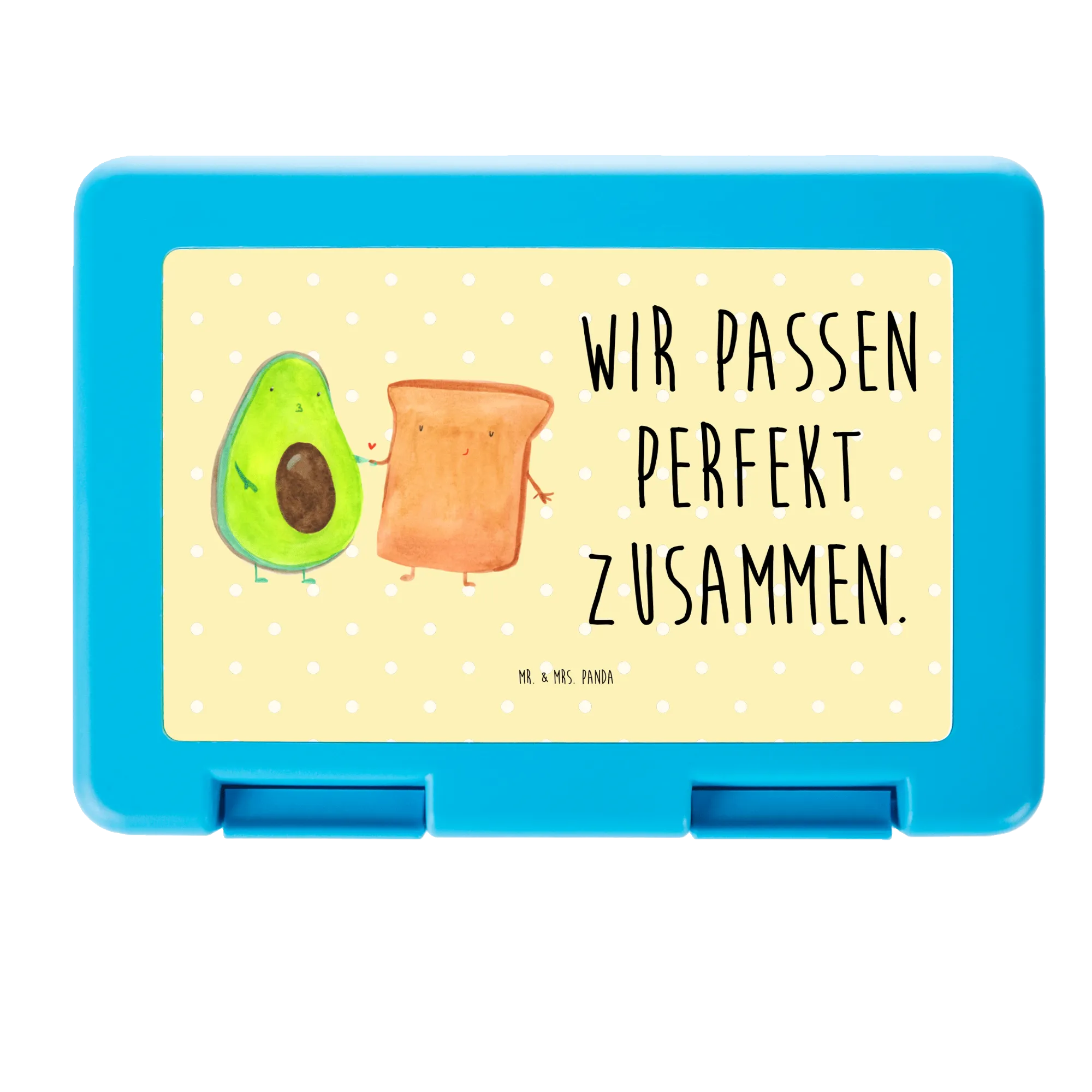Die Brotdose Avocado + Toast von Mr. & Mrs. Panda ist mehr als nur ein praktisches Utensil für deine Snacks oder Pausenbrote. Mit ihrem bezaubernden Design zeigt sie zwei süße Motive – eine Avocado und ein verliebtes Toastbrot, die sich Hand in Hand halten und verkörpern, was es heißt, perfekt zusammen zu passen.
