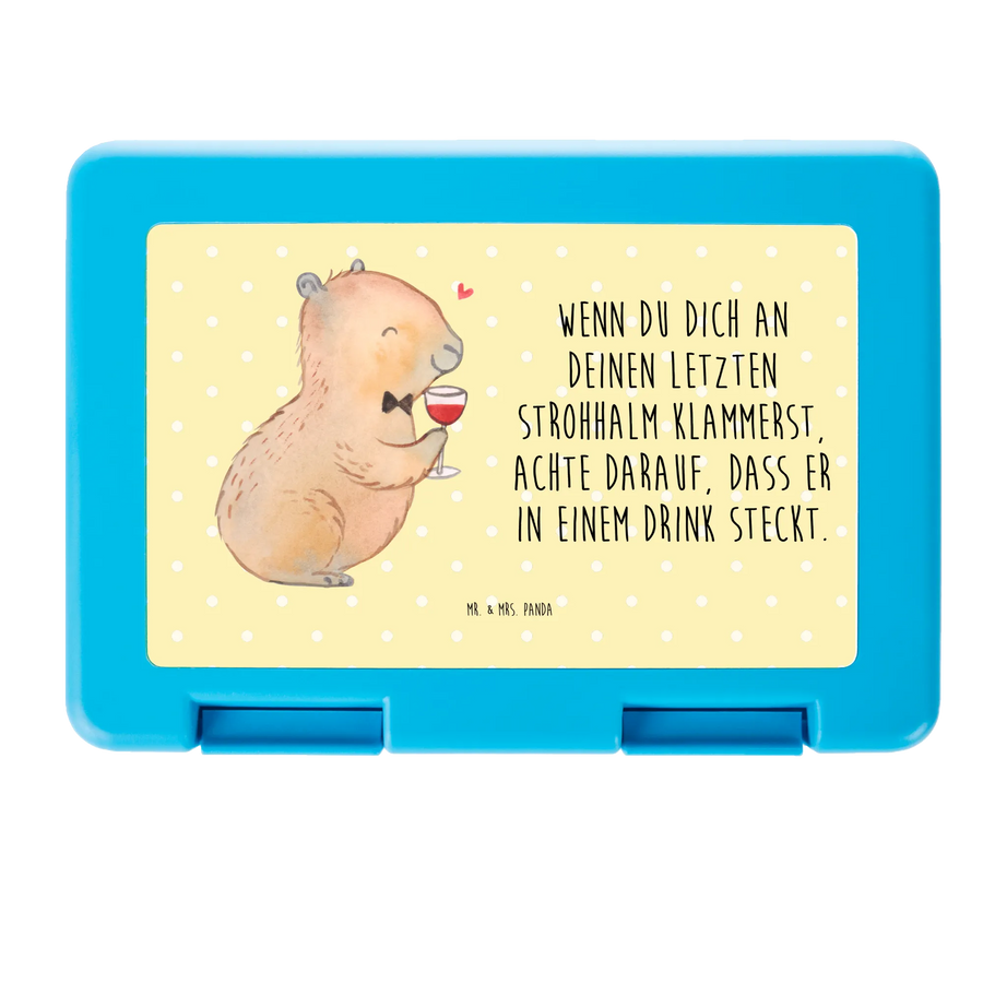 Entdecke die bezaubernde Brotdose Capybara Wein aus der Collection Small World von Mr. & Mrs. Panda! Diese wunderschöne Brotdose ist nicht nur praktisch, sondern auch ein echter Hingucker. Mit einem liebevoll handgezeichneten Capybara, das mit einem Glas Wein in der Pfote genießt, wird jede Pause zum Highlight des Tages. Der charmante Slogan „Wenn du dich an deinen letzten Strohhalm klammerst, achte darauf, dass er in einem Drink steckt.“ sorgt für Schmunzler und gute Laune!