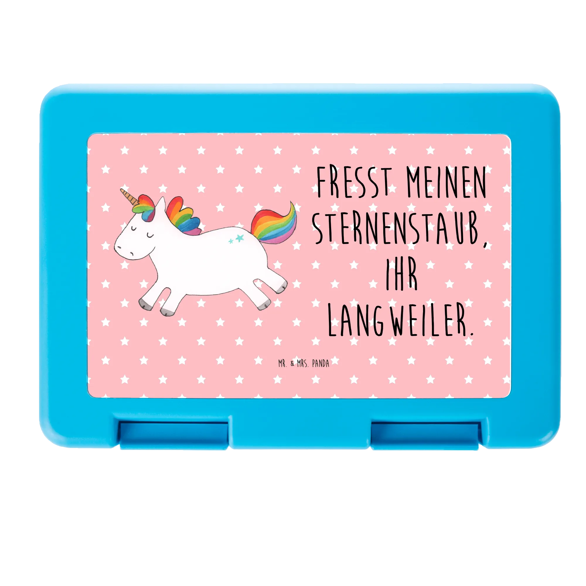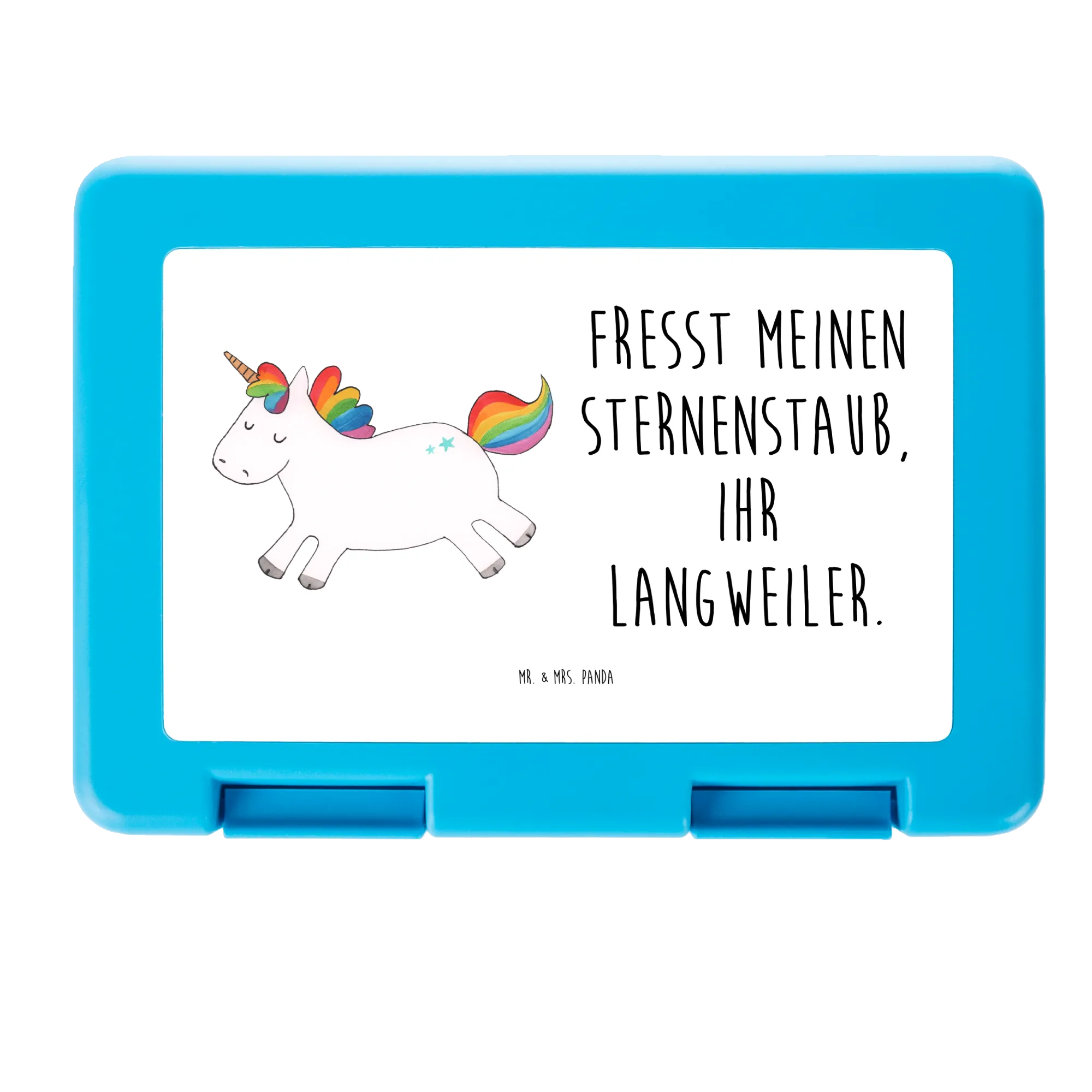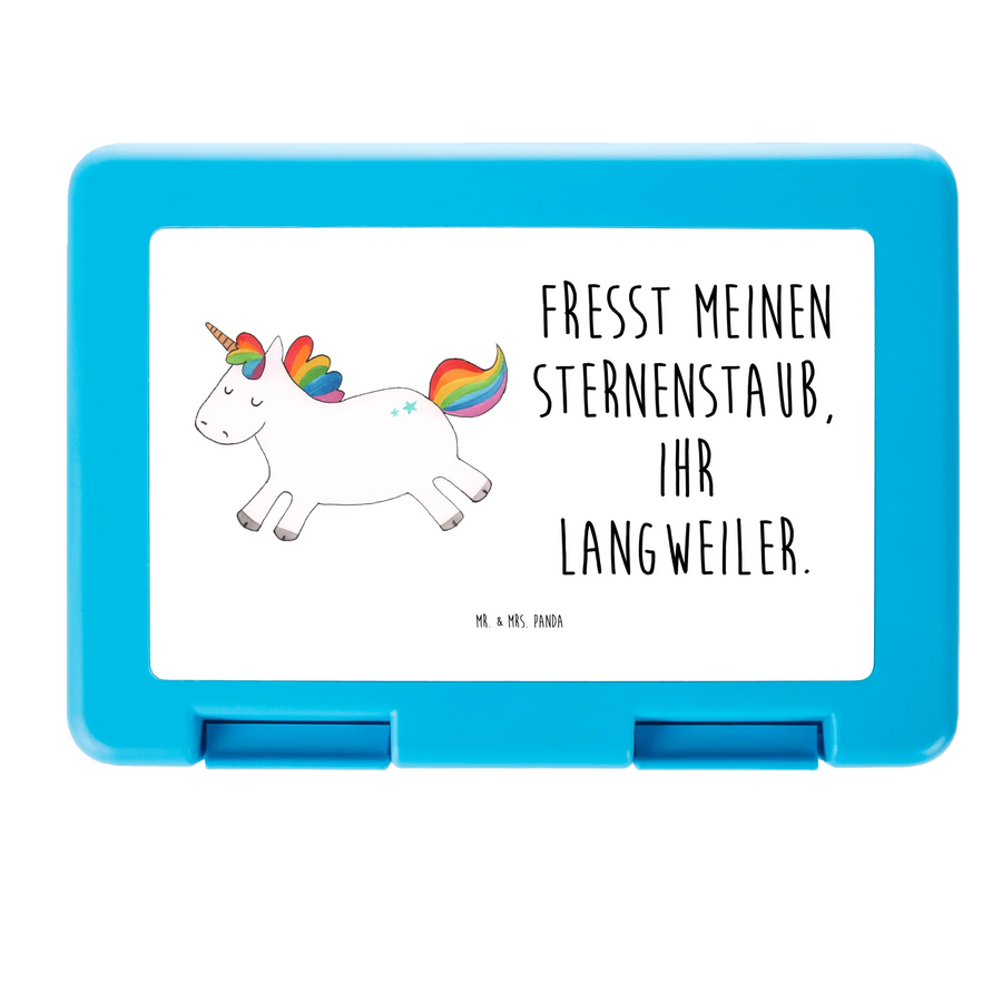 Der leicht zu bedienende Doppelverschluss sorgt dafür, dass alles sicher an seinem Platz bleibt und du dir keine Sorgen um verrutschende Leckereien machen musst. Die Brotdose ist ein ideales Geschenk für alle Einhorn-Liebhaber und die perfekte Wahl, um einem besonderen Menschen eine Freude zu machen. Ob zum Geburtstag, als kleine Aufmerksamkeit für die Schule oder einfach nur so – dieses Einhorn wird jedem ein Schmunzeln entlocken! Mit dem witzigen Spruch „Fresst meinen Sternenstaub, ihr Langweiler“ kommt Humor und Lebensfreude in jede Pause.
