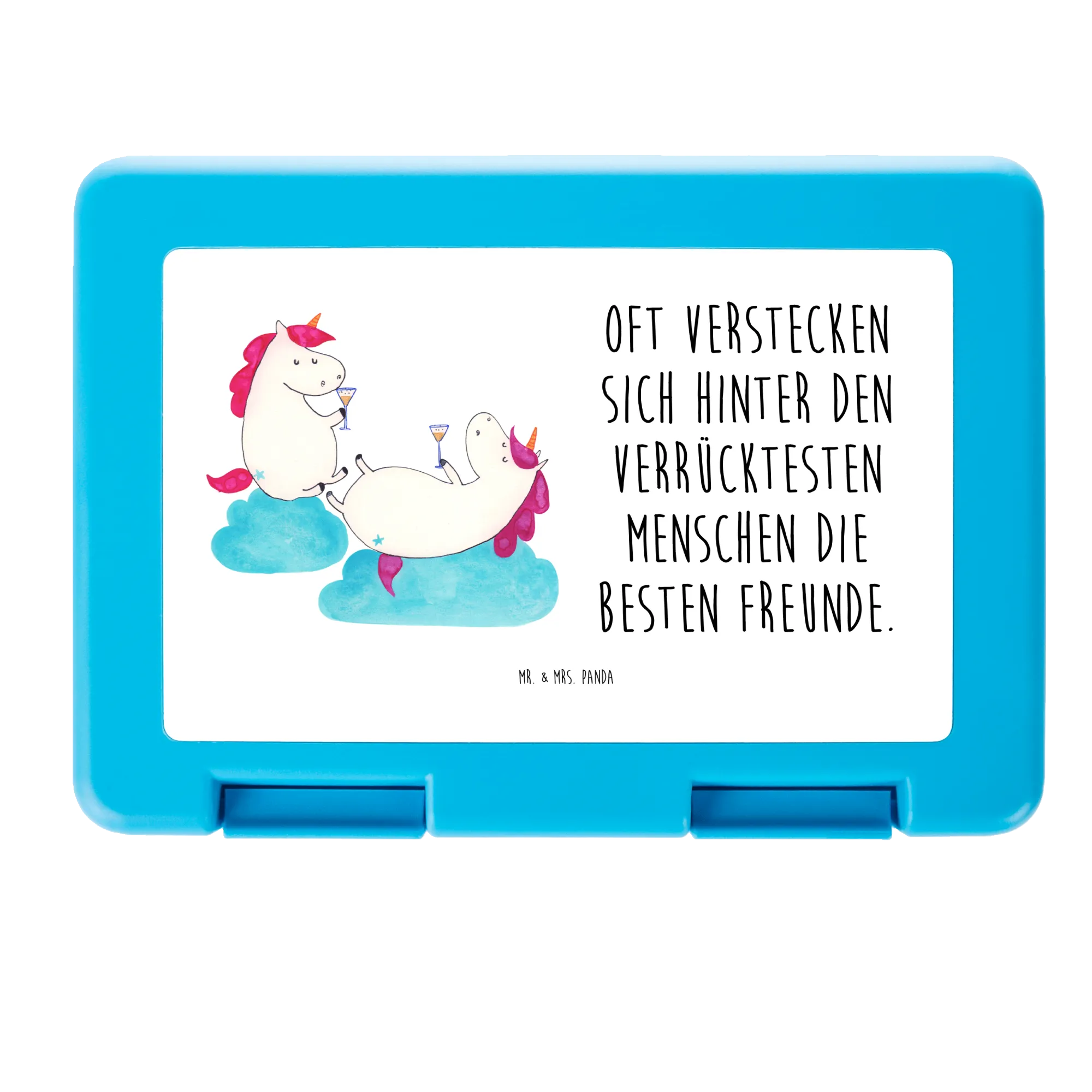 Die hochwertige Verarbeitung aus Premium-Kunststoff sorgt dafür, dass all deine Leckereien frisch und knusprig bleiben. // Bist du auf der Suche nach einem besonderen Geschenk für deine beste Freundin oder für dich selbst? Dann ist diese Brotdose genau das Richtige! Mit dem Motiv von zwei fröhlichen Einhörnern, die gemeinsam ein Glas Sekt genießen, zaubert sie sofort ein Lächeln ins Gesicht. Der Spruch "Oft verstecken sich hinter den verrücktesten Menschen die besten Freunde" spricht Bände über die besondere Verbindung, die du zu deiner Freundin hast.
