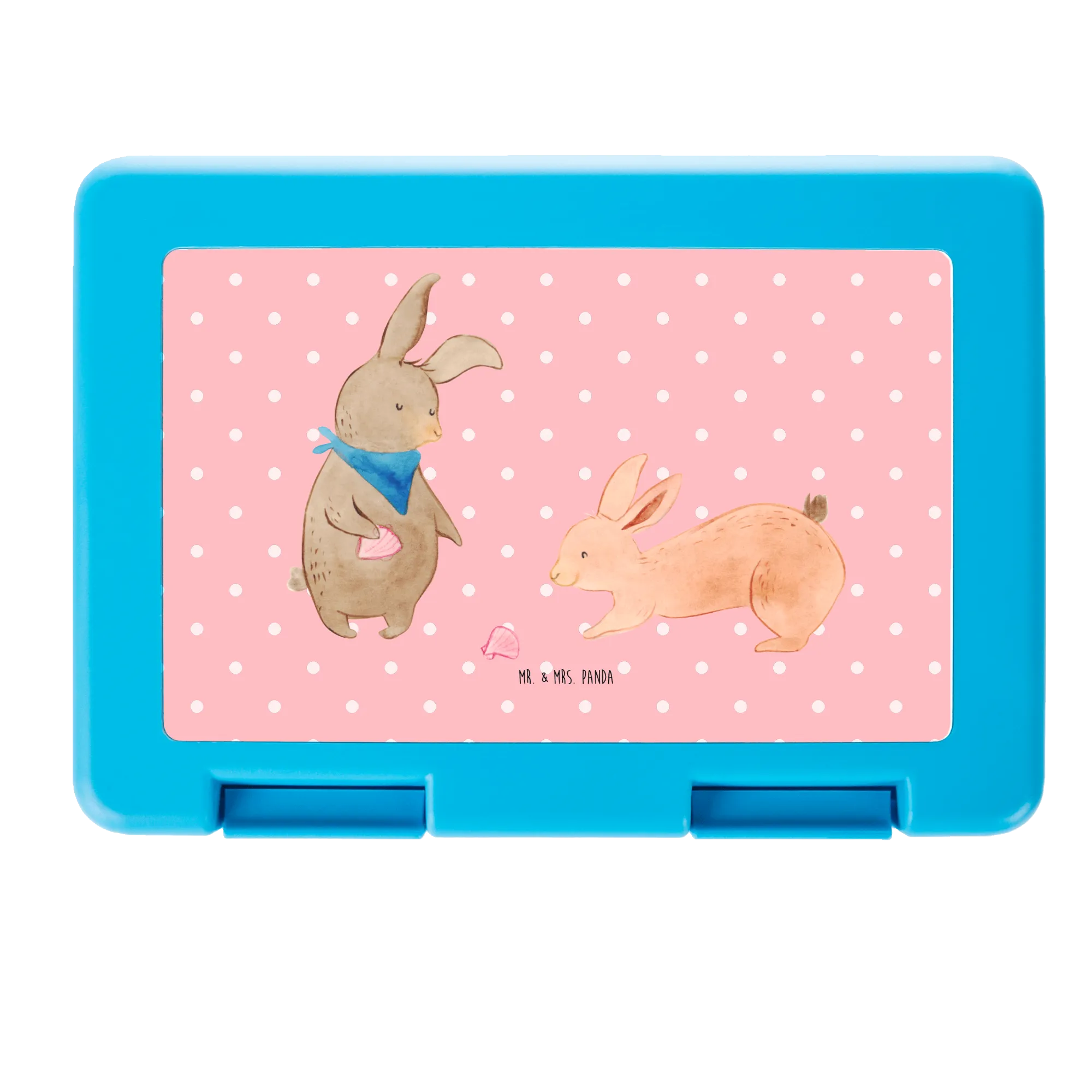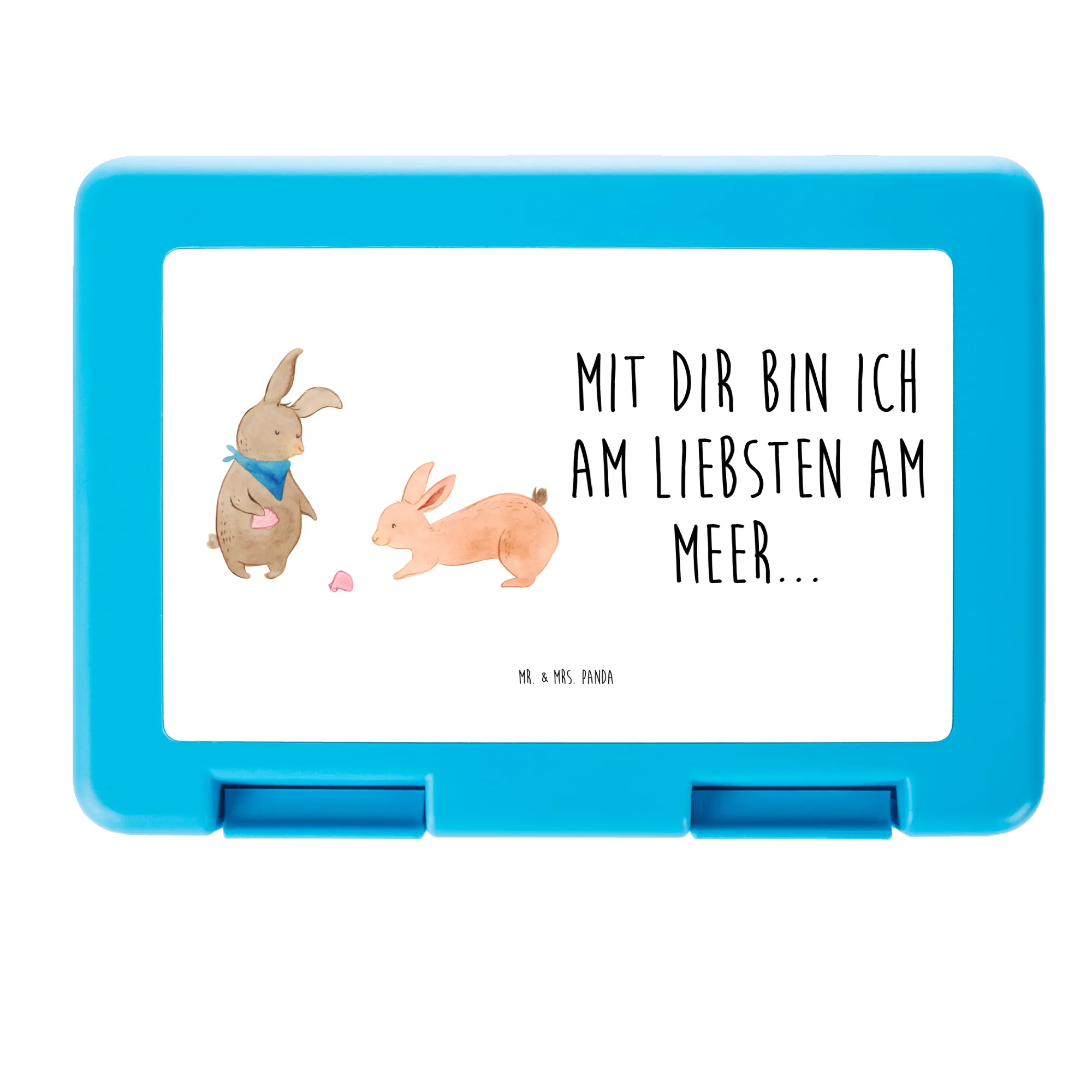 Die Brotbox "Hasen Muschel" von Mr. & Mrs. Panda ist nicht nur einfach eine Brotdose, sondern ein liebevolles Accessoire für die ganze Familie. Diese wunderschöne Brotdose wurde mit viel Herz und einem zauberhaften Motiv von zwei stilisierten Hasen gestaltet, die harmonisch auf die rosa Muschel schauen. Der große Hase mit dem blauen Halstuch und der neugierige Hase auf dem Boden strahlen pure Freude und gemeinsame Abenteuer am Meer aus.