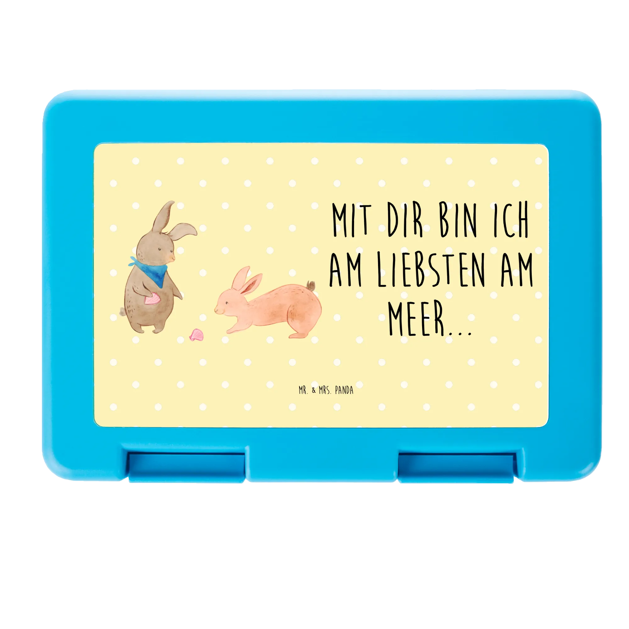 Diese zauberhafte Brotdose von Mr. & Mrs. Panda mit dem Motiv "Hasen Muschel" ist das perfekte Geschenk für alle kleinen und großen Familienmitglieder! Mit dem liebevollen Design, das zwei stilisierte Hasen in warmen, freundlichen Farben zeigt, bringt diese Brotzeitbox nicht nur Freude, sondern auch eine Prise Meer in den Alltag. Der linke Hase, elegant mit einem blauen Halstuch, hält eine rosafarbene Muschel, während sein Freund, der rechte Hase, neugierig danach greift.