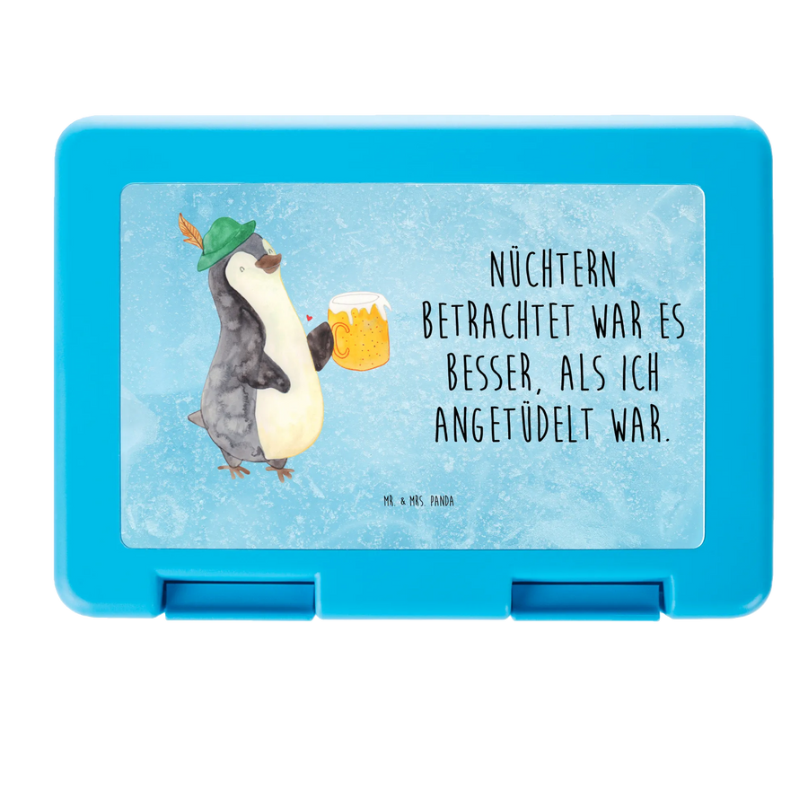 Brotdose Pinguin Bier - mit Spruch - Eisblau