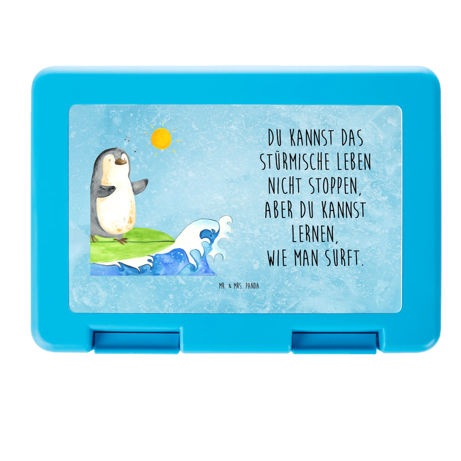 Brotdose Pinguin Surfer - mit Spruch - Eisblau