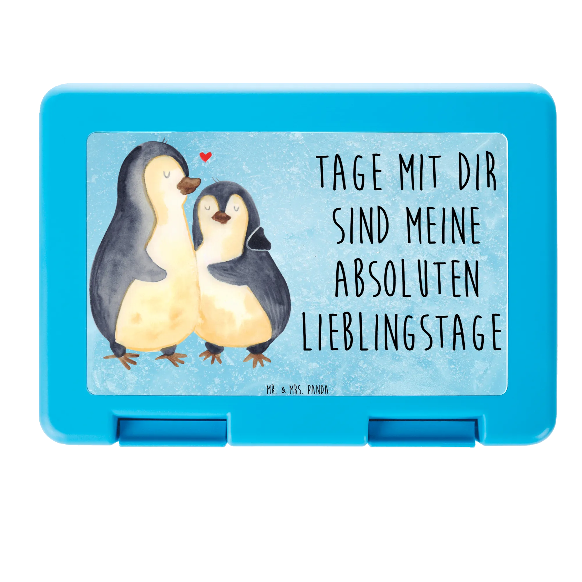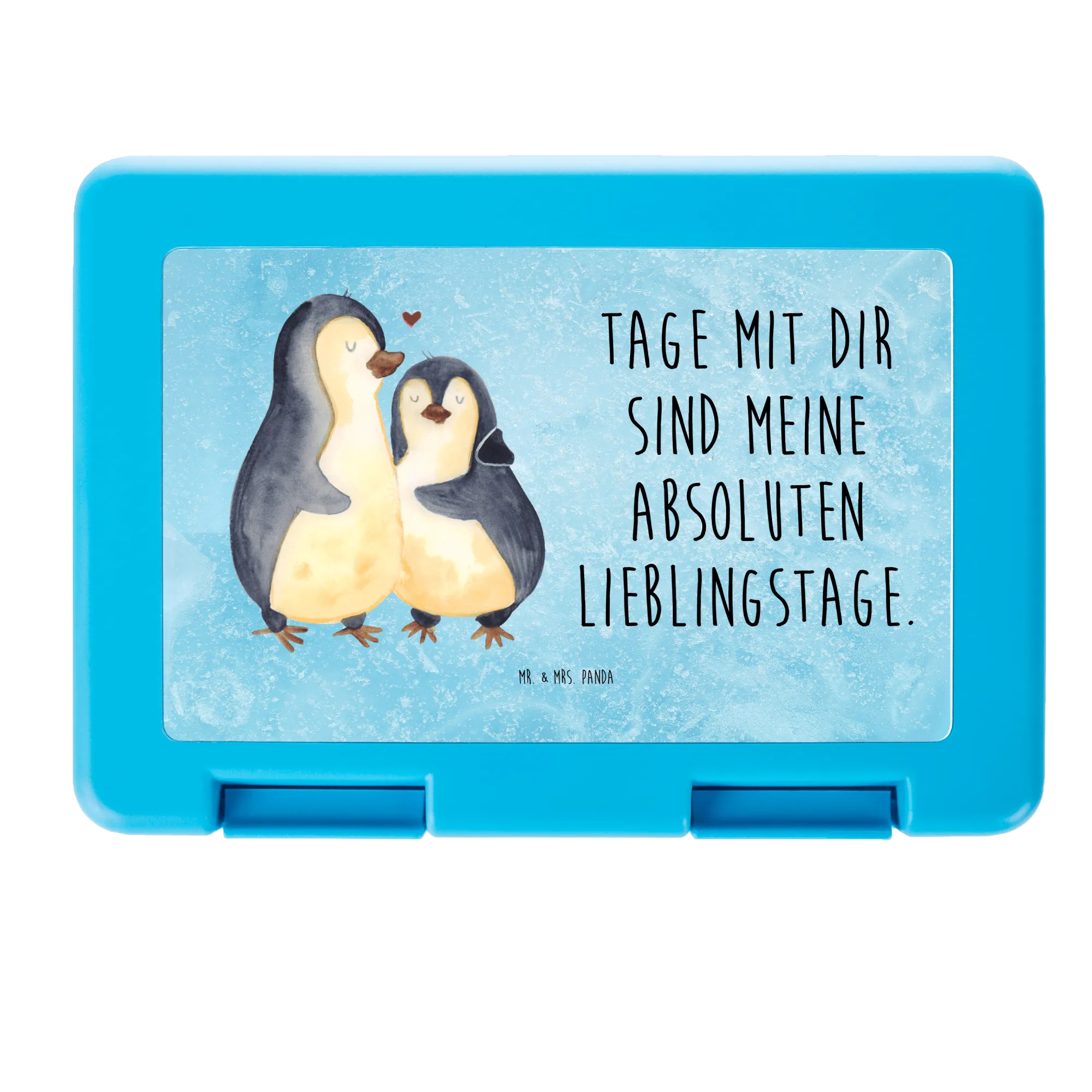 Brotdose Pinguin umarmend - mit Spruch - Eisblau