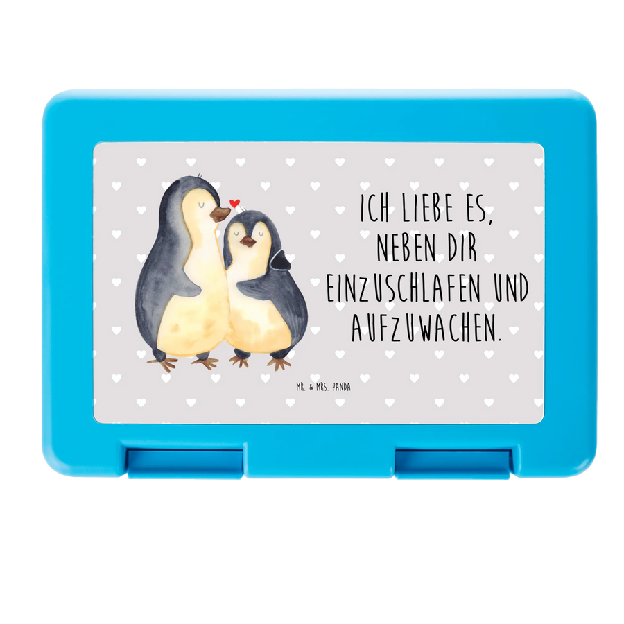 Diese liebevoll gestaltete Brotdose aus der Liebe-Kollektion von Mr. & Mrs. Panda ist mehr als eine Lunchbox: Sie ist ein kleines Statement der Zuneigung. Auf dem pastellgrauen Hintergrund kuscheln zwei Pinguine innig, darüber schwebt ein rotes Herz und der liebevolle Spruch „Ich liebe es, neben dir einzuschlafen und aufzuwachen.“ Perfekt als Geschenk für Freund, Freundin, Ehemann oder Ehefrau.