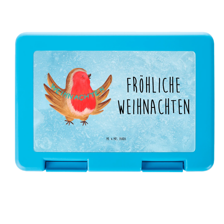 Brotdose Rotkehlchen Weihnachten - mit Spruch - Eisblau