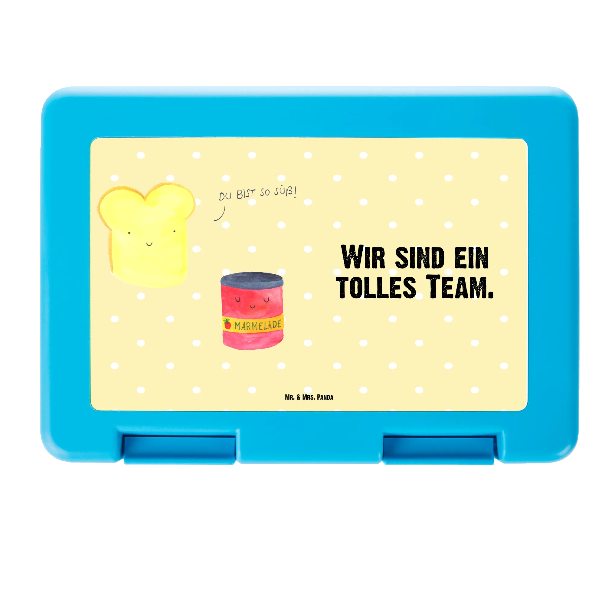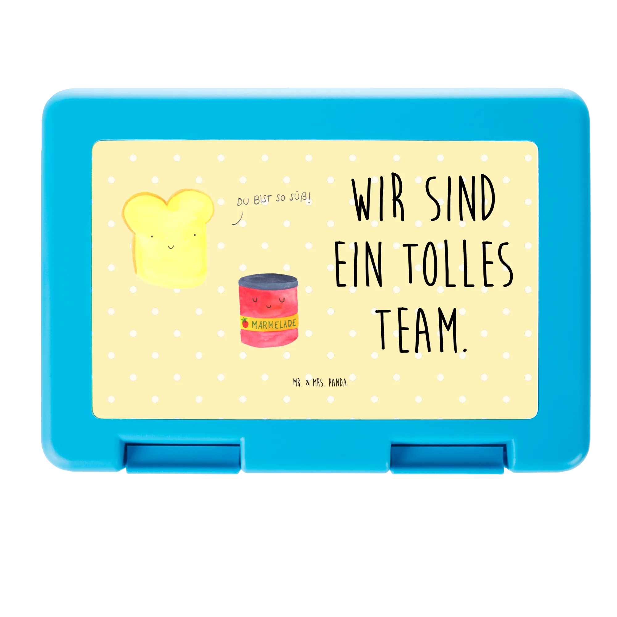 Die perfekte Brotdose von Mr. & Mrs. Panda mit dem Motiv "Toast & Marmelade" ist nicht nur ein praktischer Begleiter für die Schule oder den Arbeitsalltag, sondern auch eine liebevolle Erinnerung daran, wie süß das Leben sein kann. Diese Brotzeitbox begeistert durch ihr fröhliches Design und den motivierenden Spruch "Wir sind ein tolles Team." Egal, ob für das Frühstück, das gemeinsame Picknick oder ein schnelles Mittagessen – diese Brotdose bietet ausreichend Platz für dein gesamtes Pausenbrot oder einen gesunden Snack.