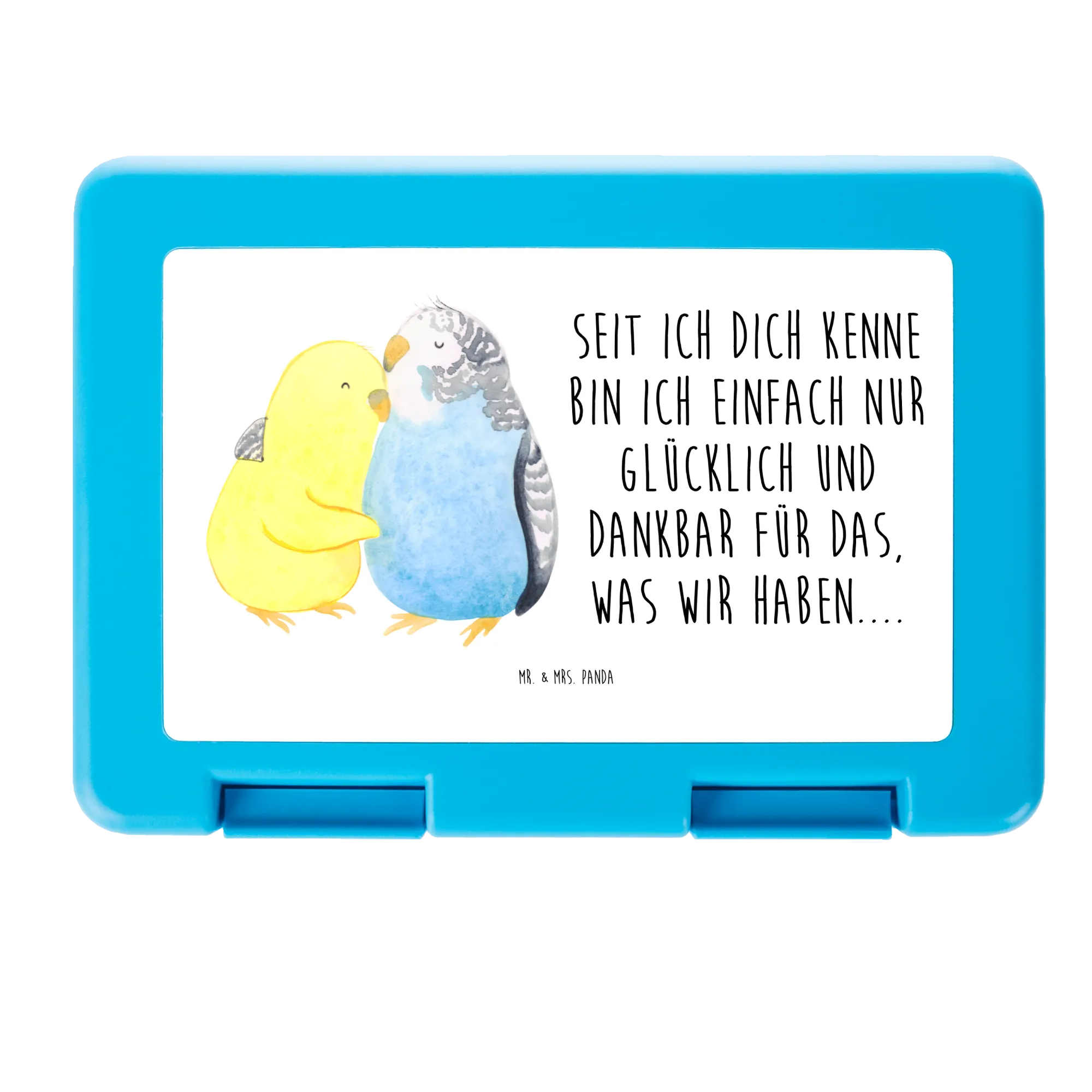Liebe zum Mitnehmen: Die Brotdose "Wellensittich Liebe" von Mr. & Mrs. Panda ist mehr als nur eine Lunchbox – sie ist ein kleines Liebeszeichen für jeden Tag. Auf dem hellen Hintergrund kuscheln zwei zarte Wellensittiche in pastelligen Aquarelltönen und vermitteln sofort Wärme, Nähe und Geborgenheit.