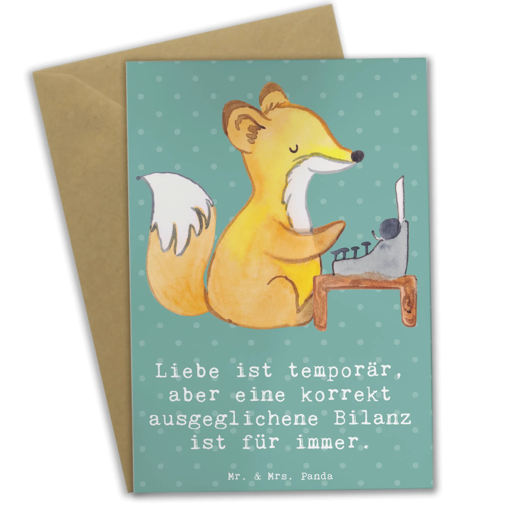Der Spruch "Liebe ist temporär, aber eine korrekt ausgeglichene Bilanz ist für immer" ist nicht nur humorvoll, sondern trifft auch genau den Nerv dieser Berufsgruppe. Ob zur Hochzeit, zum Geburtstag oder einfach nur als nette Geste – diese Grußkarte ist vielseitig einsetzbar und lässt sich individuell beschriften.