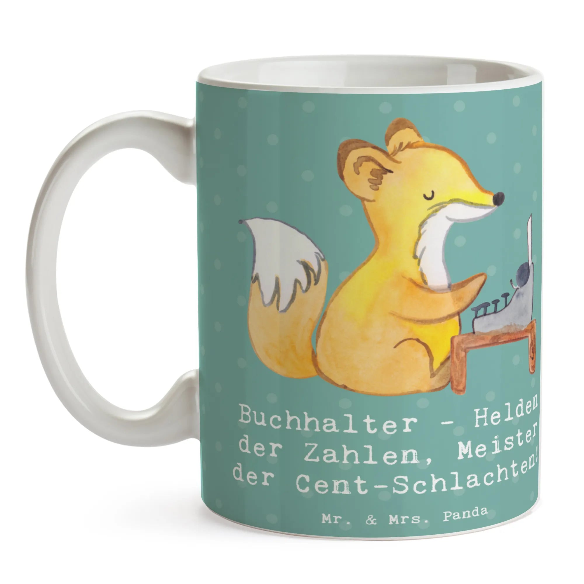 Entdecke die perfekte Tasse für Buchhalter – unser liebevolles Design von Mr. & Mrs. Panda bringt ein Lächeln in Deinen Büroalltag! Die Tasse mit dem Spruch 'Buchhalter - Helden der Zahlen, Meister der Cent-Schlachten!' ist nicht nur ein echter Blickfang, sondern auch das ideale Geschenk für all diejenigen, die sich täglich mit Finanzen und Buchführung beschäftigen. Ob zum Berufsstart, zum Jubiläum oder einfach als kleine Aufmerksamkeit zwischendurch – diese Kaffeetasse passt einfach perfekt!