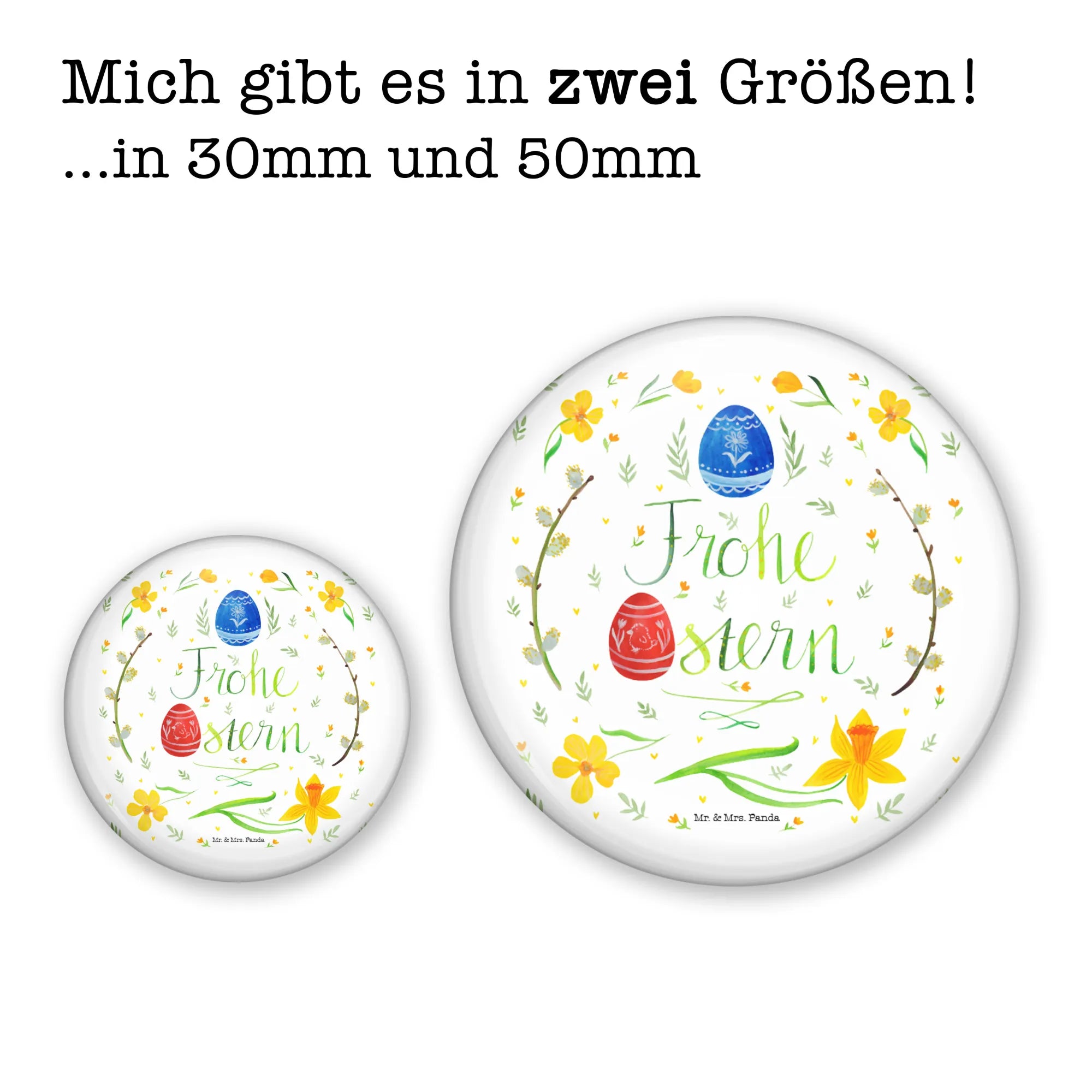 Suchst Du nach dem perfekten Geschenk für Ostern? Der 50mm Button mit dem liebevollen Motiv "Frohe Ostern" aus der Ostern-Kollektion von Mr. & Mrs. Panda ist genau das, was Du brauchst! In der fröhlichen Frühlingszeit will man doch die besten Ostergrüße verbreiten, und dieser Button ist eine tolle Möglichkeit, dies zu tun. Der filigrane Aquarellschriftzug und die Blumen umringen das „Frohe Ostern“-Motiv und bringen die Frühlingsgefühle direkt an die Kleidung oder die Accessoires Deiner Liebsten. Ob für Freunde, Familie oder für die Kinder - dieser Button ist ein kleines, aber feines Geschenk, das immer willkommen ist.