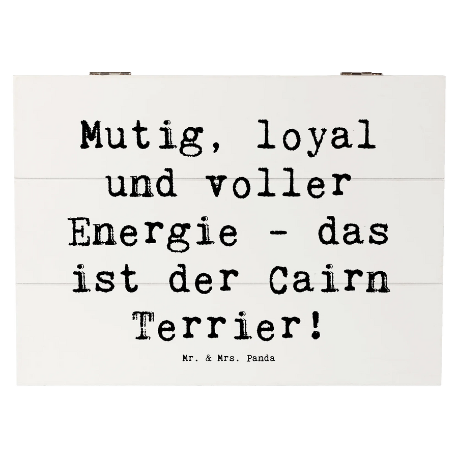 Die wunderschöne Holzkiste von Mr. & Mrs. Panda ist der perfekte Ort, um all Deine wertvollen Erinnerungen und Schätze sicher aufzubewahren. Mit einem einzigartigen Motiv des Cairn Terriers und dem liebevollen Spruch "Mutig, loyal und voller Energie - das ist der Cairn Terrier!" wird diese Erinnerungskiste garantiert zum Blickfang in Deinem Zuhause.