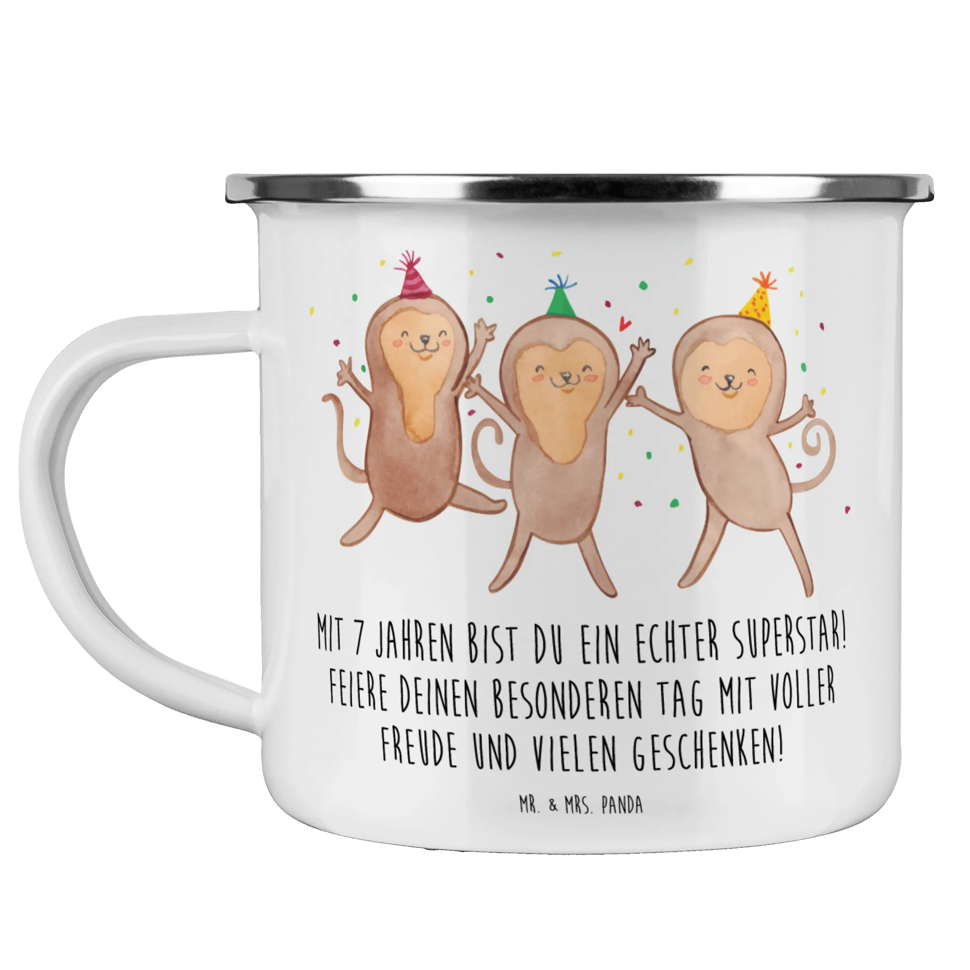 Camping Emaille Tasse 7. Geburtstag Superstar – Mr. & Mrs. Panda