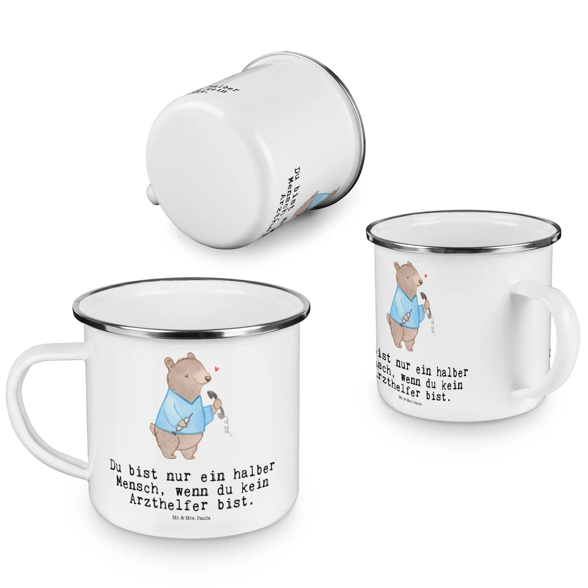Mit einem Motiv, das die Hingabe und das Herzblut von Arzthelfern perfekt einfängt, sowie dem Spruch "Du bist nur ein halber Mensch, wenn du kein Arzthelfer bist", ist diese Tasse sowohl ein echter Hingucker als auch ein tolles Gesprächsthema. Diese robuste Emaille Tasse hat eine Füllmenge von 300 ml und wiegt nur 172 g, was sie superleicht und perfekt für deine nächsten Outdoor-Abenteuer macht.