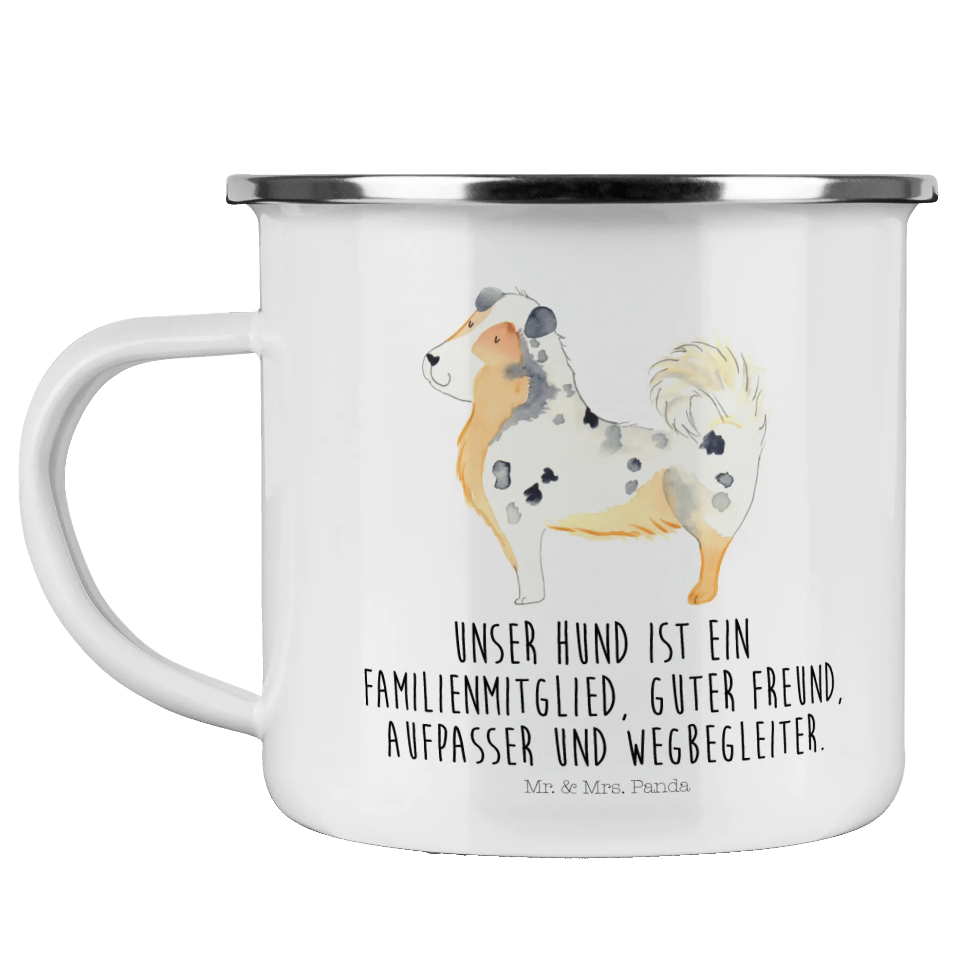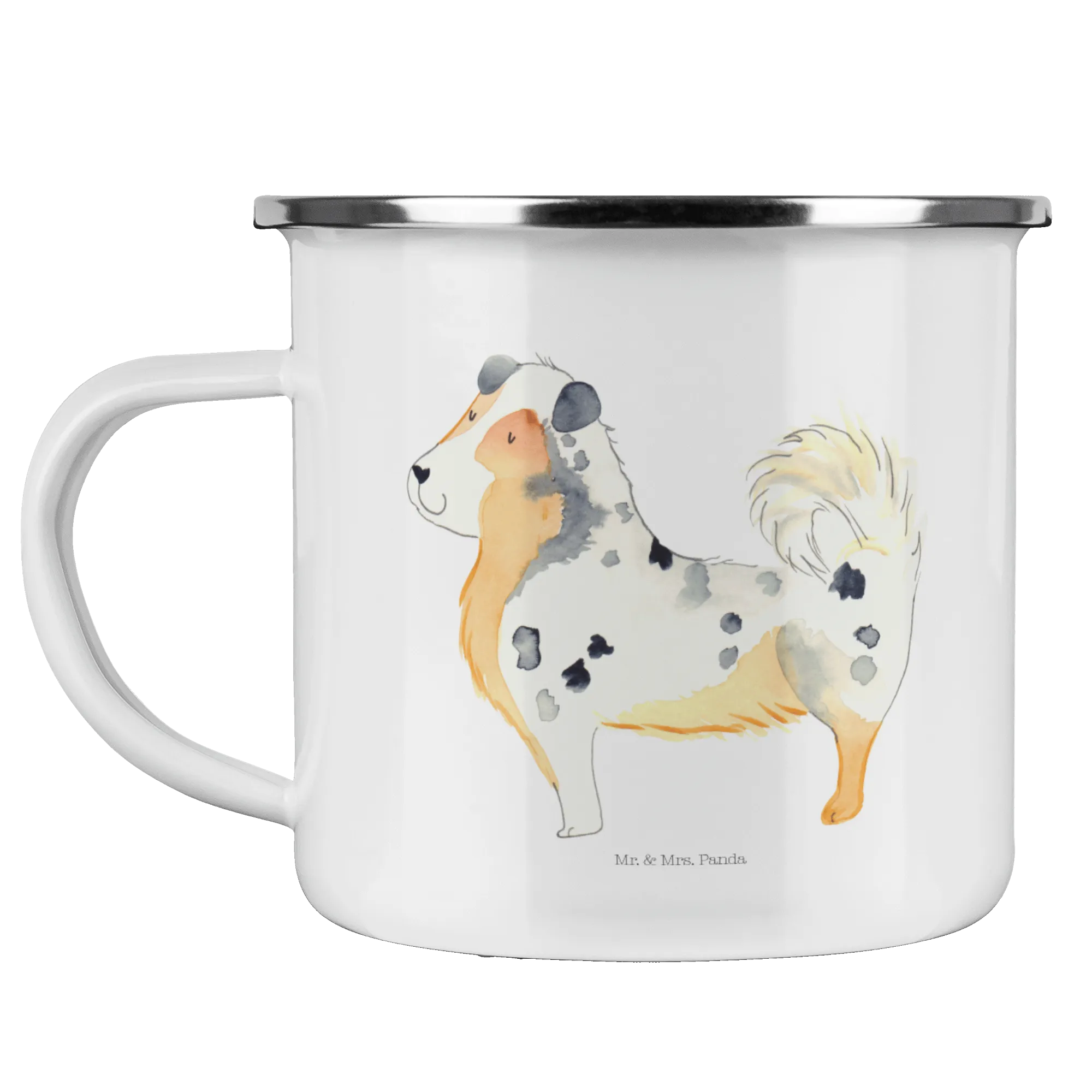 Die wunderschöne Camping Emaille Tasse mit dem Motiv eines Australian Shepherds aus der Hunde Kollektion von Mr. & Mrs. Panda ist der perfekte Begleiter für alle Outdoor-Enthusiasten und Hundeliebhaber. Mit ihren charmanten und liebevoll handgezeichneten Motiven bringt sie nicht nur Freude beim Trinken, sondern ist auch ein tolles Geschenk für jeden, der einen treuen Vierbeiner zu Hause hat.