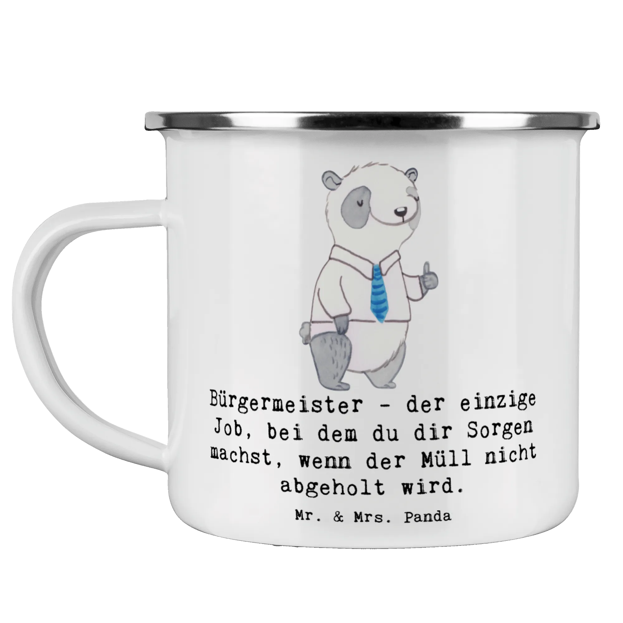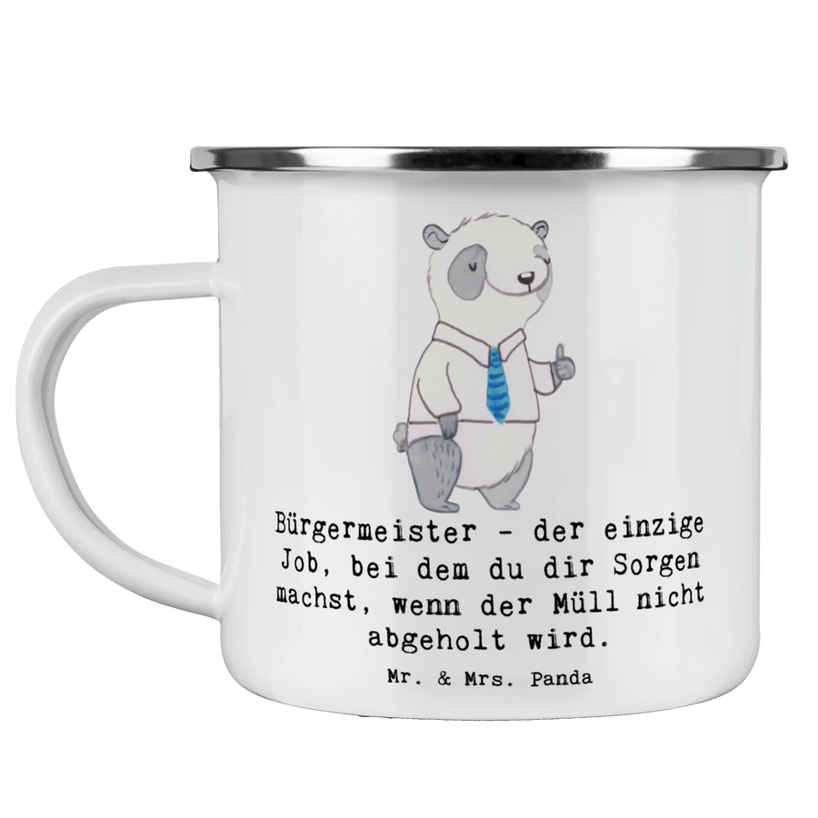 Entdecke die perfekte Camping Emaille Tasse mit dem süßen Motiv "Bürgermeister" von Mr. & Mrs. Panda! Diese wunderschöne und beständige Emaille Tasse ist nicht nur praktisch, sondern auch ein echter Hingucker für alle, die den Job eines Bürgermeisters wertschätzen. Der Slogan "Bürgermeister - der einzige Job, bei dem du dir Sorgen machst, wenn der Müll nicht abgeholt wird." sorgt für Lächeln und Gesprächsstoff am Lagerfeuer.