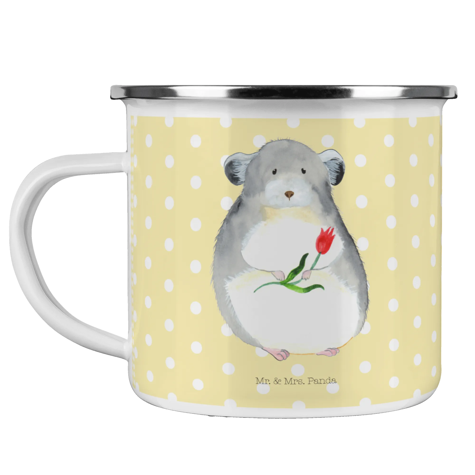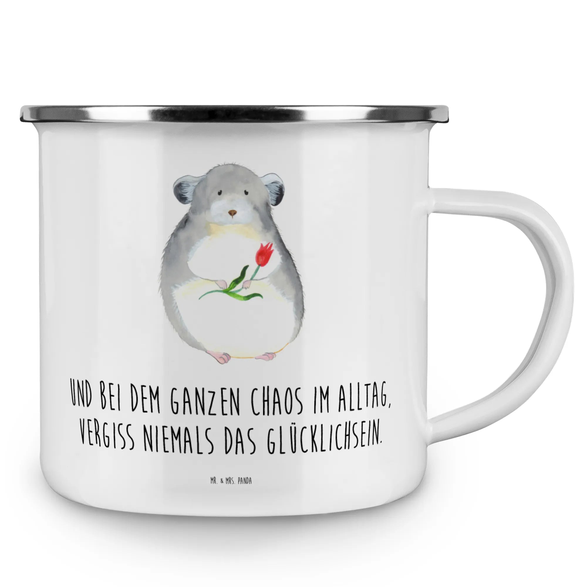 Die Camping Emaille Tasse "Chinchilla mit Blume" von Mr. & Mrs. Panda ist nicht nur ein praktisches Utensil für deine nächsten Outdoor-Abenteuer, sondern auch ein herzliches Geschenk für alle Tierliebhaber und Naturliebhaber! Mit einer Füllmenge von 300 ml ist sie perfekt für heiße und kalte Getränke, sei es beim Camping, Wandern oder einfach beim Entspannen im Garten.