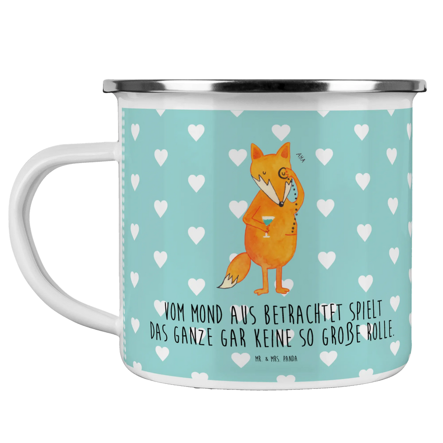 Die Camping Emaille Tasse "Fuchs Lord" von Mr. & Mrs. Panda ist der perfekte Begleiter für alle Outdoor-Abenteuer!