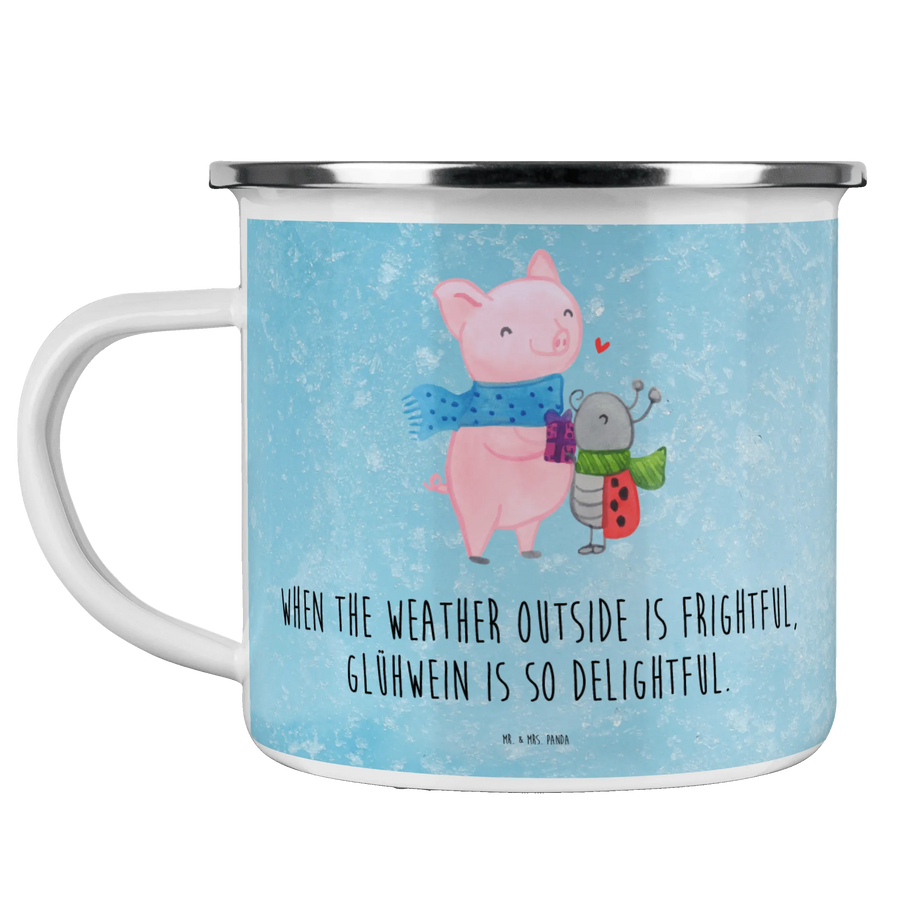 Entdecke die wunderschöne Camping Emaille Tasse "Glühschwein Smörle" von Mr. & Mrs. Panda – das perfekte Geschenk für alle Glühwein-Liebhaber und Winterfreunde!