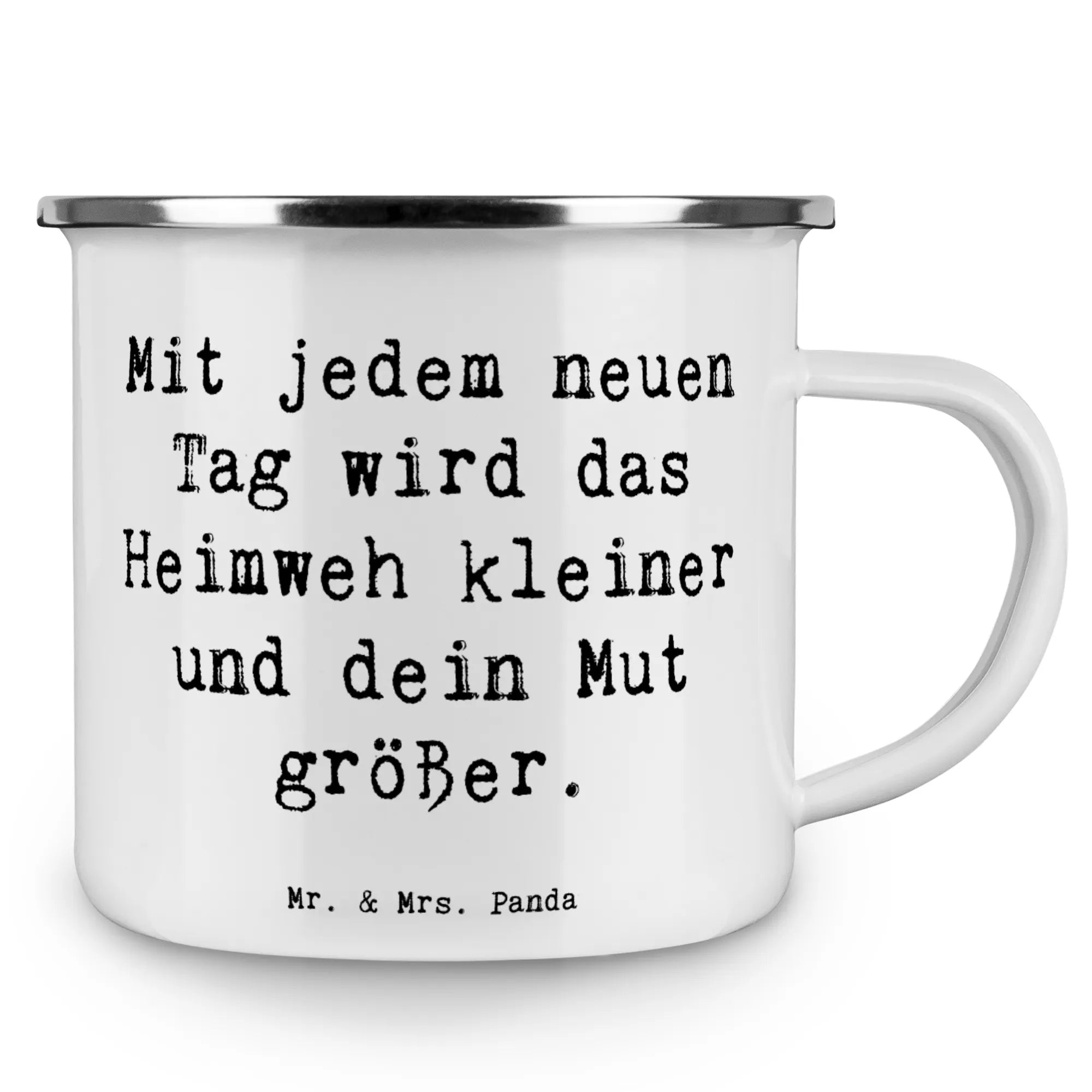 Camping Emaille Tasse Spruch Heimweh überwinden Mut
