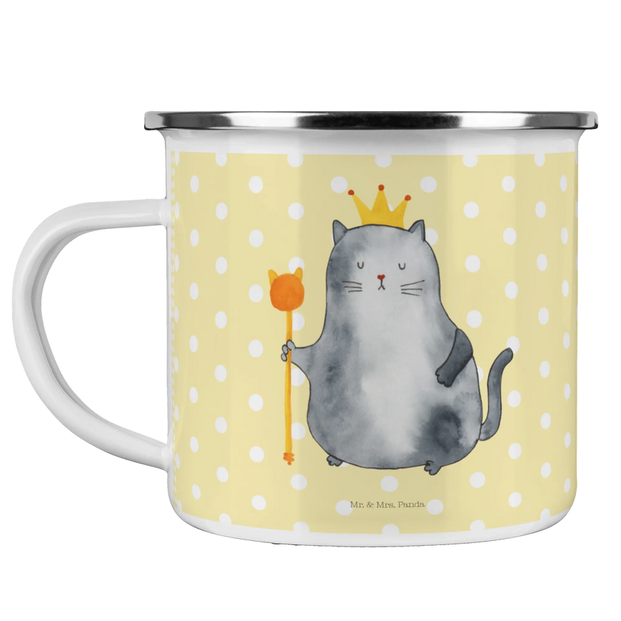 Camping Emaille Tasse Katze König - ohne Spruch - Gelb Pastell
