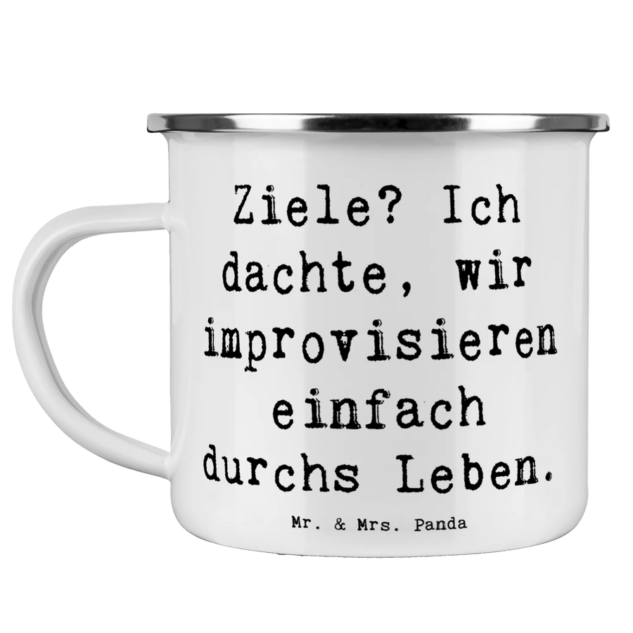 Camping Emaille Tasse Spruch Lebensziele Improvisation