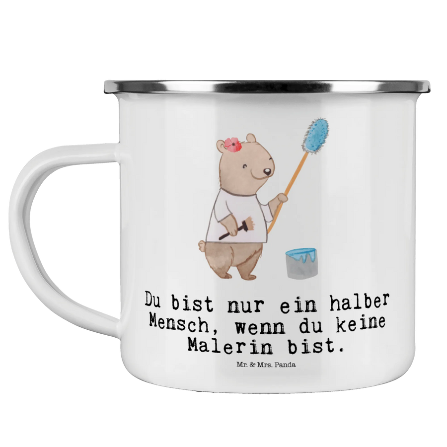 Die Camping Emaille Tasse 'Malerin mit Herz' von Mr. & Mrs. Panda ist das perfekte Geschenk für jeden Maler oder jede Malerin, die ihren Beruf liebt. Diese wunderschöne Tasse ist nicht nur ein praktischer Begleiter bei all deinen Outdoor-Abenteuern, sondern auch ein liebevolles Zeichen der Wertschätzung für die kreative Arbeit, die in jedem Pinselstrich steckt.