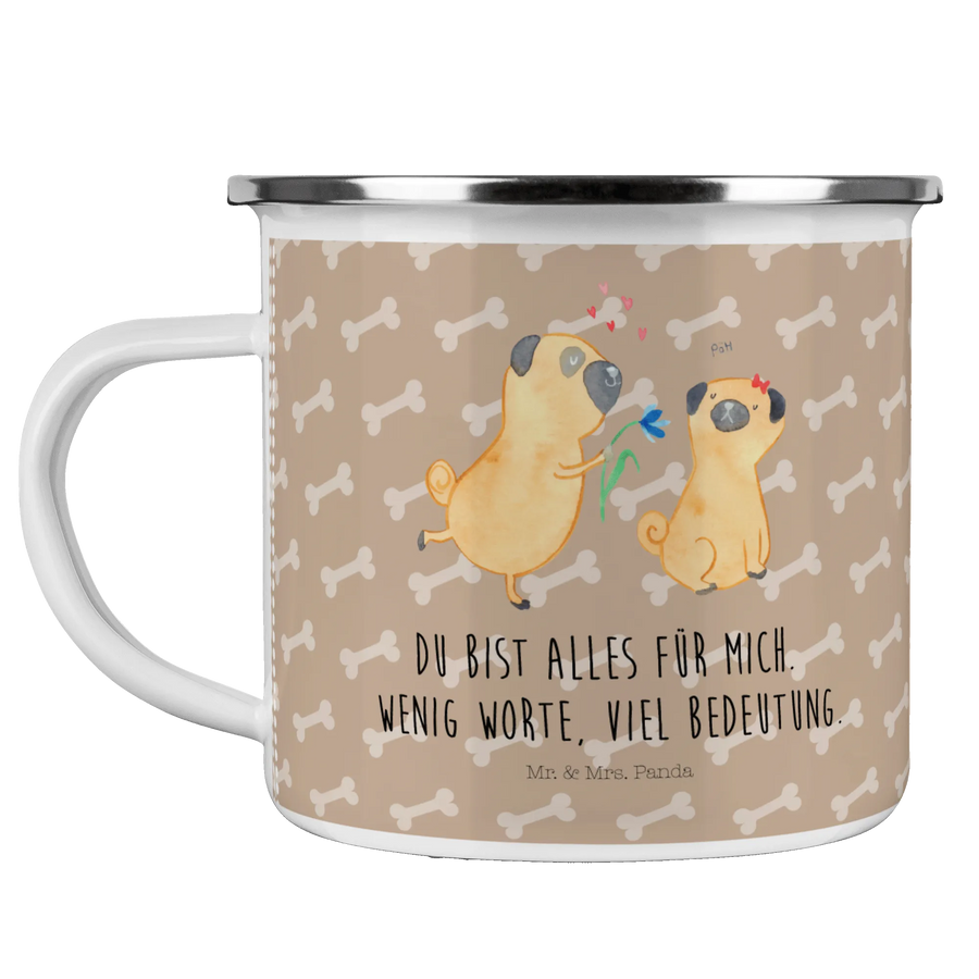 Camping Emaille Tasse Mops Verliebt - mit Spruch - Hundeglück