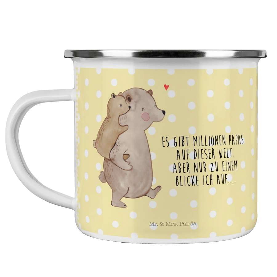 Camping Emaille Tasse Papa Bär - mit Spruch - Gelb Pastell