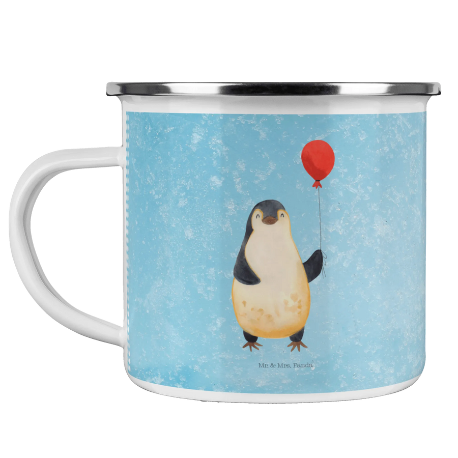 Die Camping Emaille Tasse mit dem süßen Pinguin Luftballon aus der Pinguin-Kollektion von Mr. & Mrs. Panda ist das perfekte Geschenk für jeden Outdoor-Liebhaber und Abenteurer! Ob beim Campen, Wandern oder einfach im Garten – diese Tasse wird zu deinem treuen Begleiter für heiße und kalte Getränke.