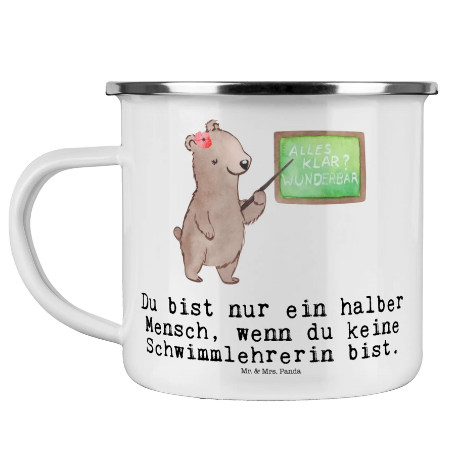 Camping Emaille Tasse Schwimmlehrerin mit Herz – Mr. & Mrs. Panda