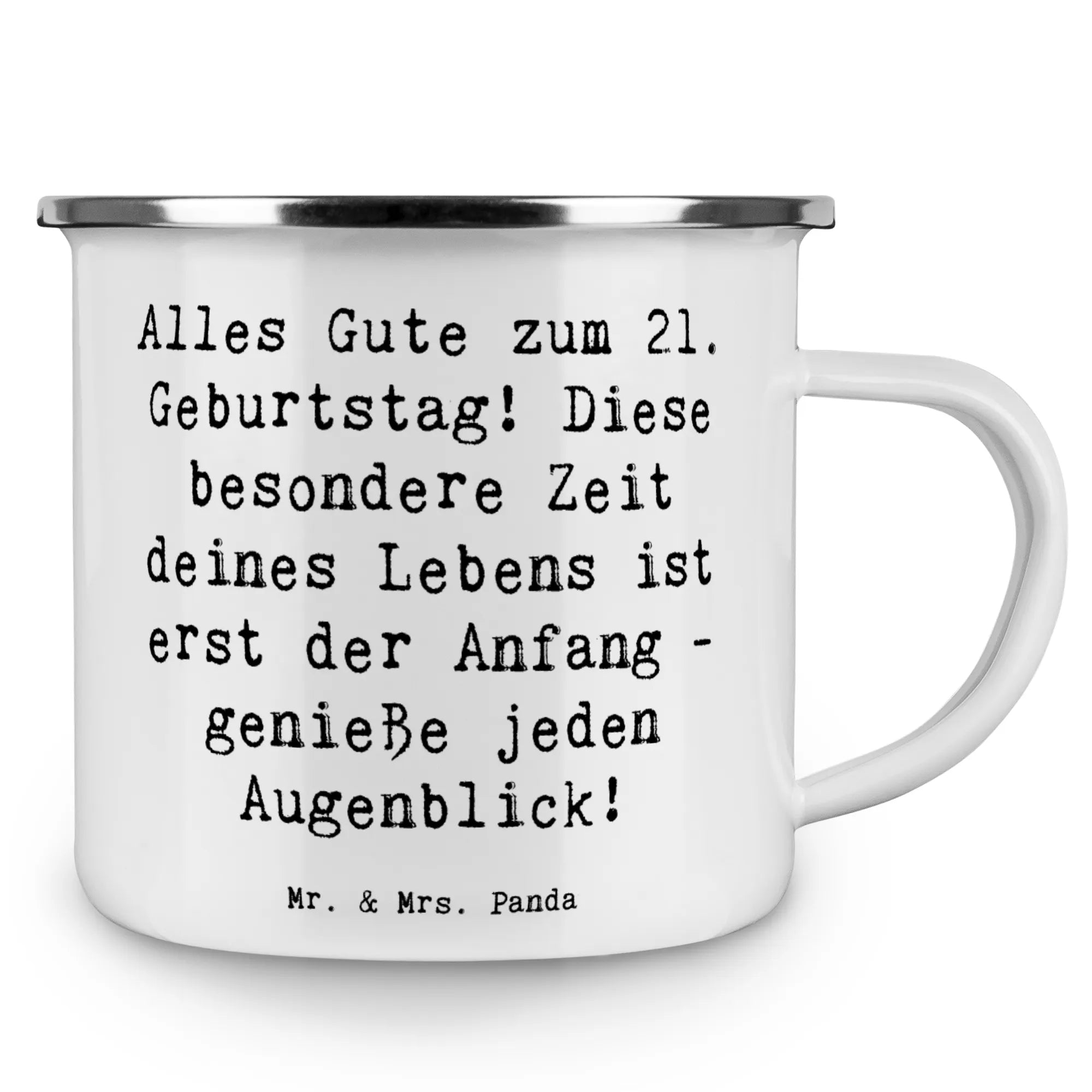 Die Camping Emaille Tasse "Alles Gute zum 21. Geburtstag!" von Mr. & Mrs. Panda ist das perfekte Geschenk für alle, die diesen besonderen Tag in vollen Zügen genießen wollen!