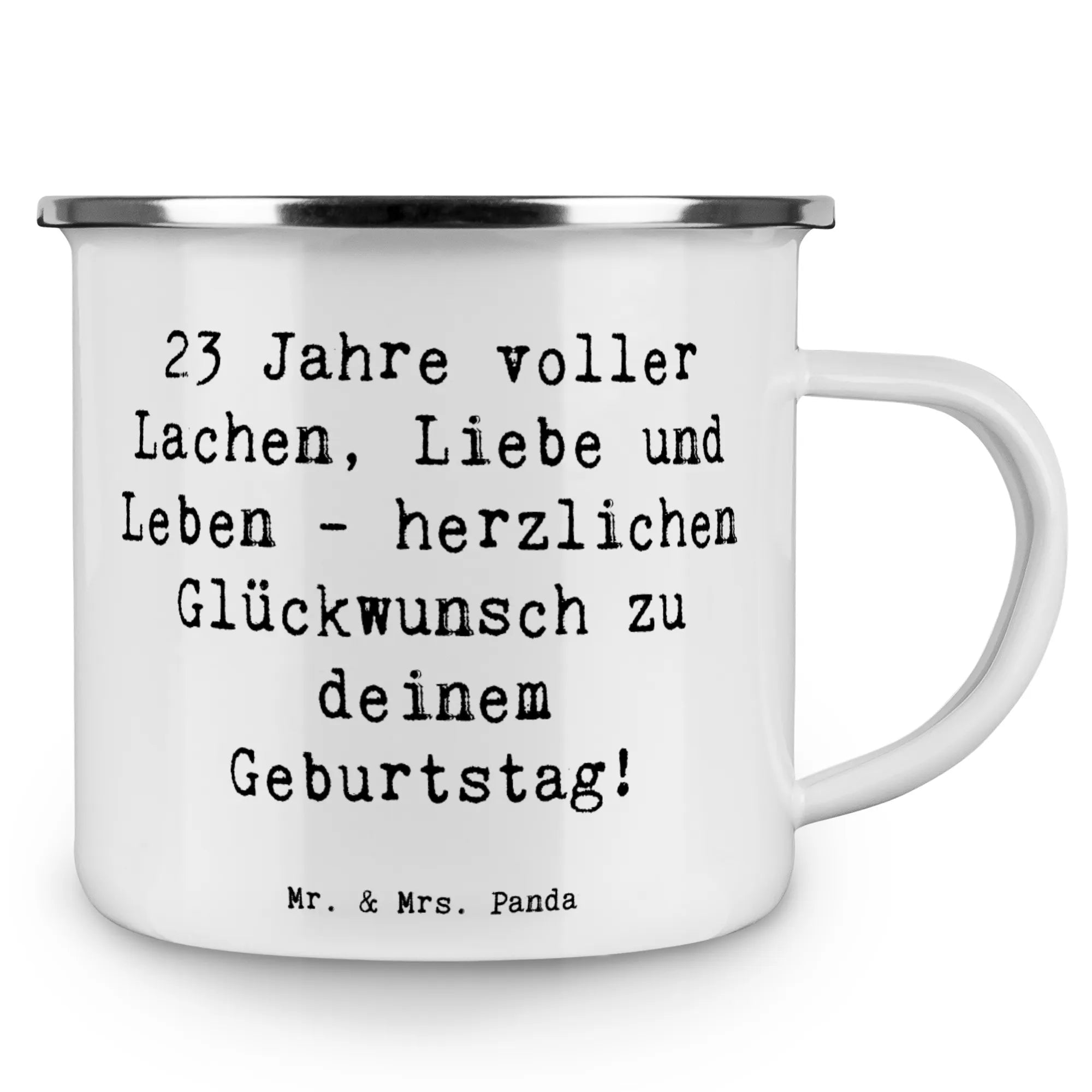 Die wunderschöne Camping Emaille Tasse von Mr. & Mrs. Panda ist nicht nur ein praktischer Begleiter für all deine Abenteuer in der Natur, sondern auch ein liebevolles Geschenk zum 23. Geburtstag! Mit dem süßen Spruch "23 Jahre voller Lachen, Liebe und Leben - herzlichen Glückwunsch zu deinem Geburtstag!" ist diese Tasse perfekt, um Freude zu verbreiten und die bedeutenden Momente im Leben zu feiern.