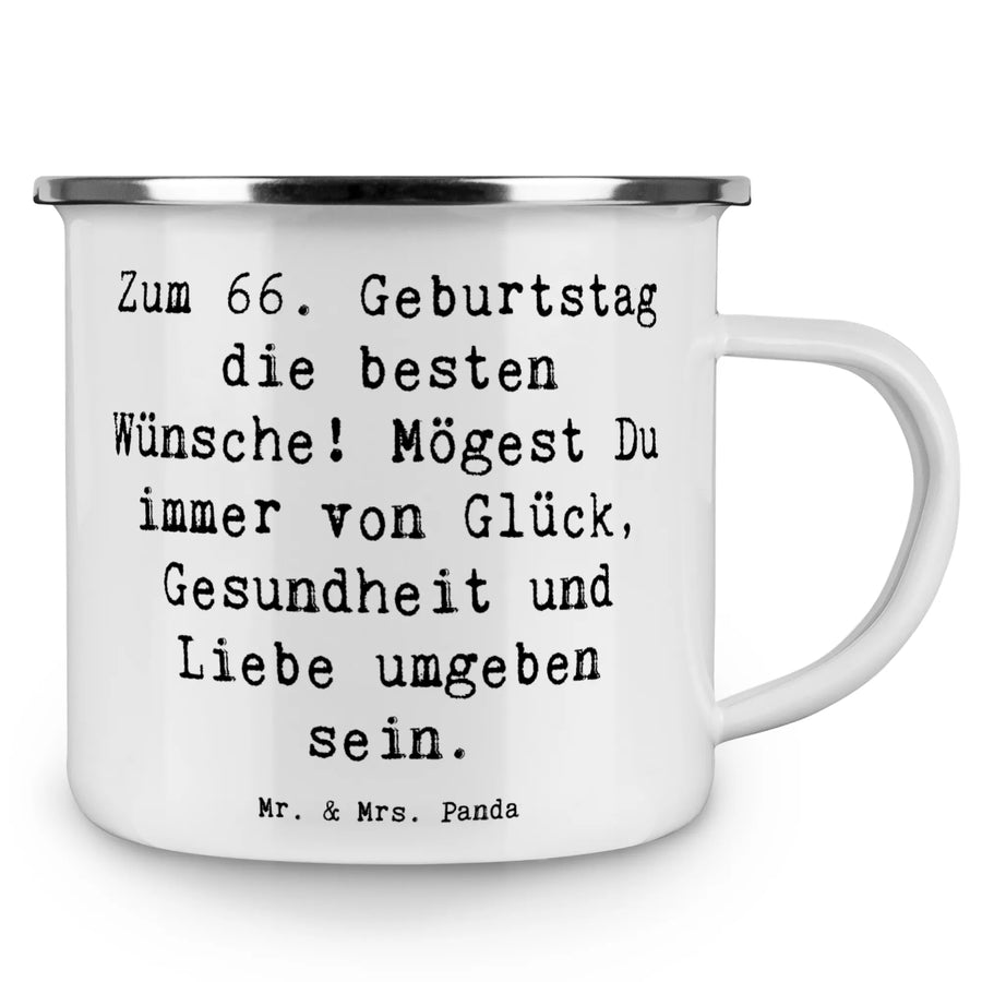 Mache deinen 66. Geburtstag unvergesslich – mit dieser bezaubernden Camping Emaille Tasse von Mr. & Mrs. Panda! Hier wird Feiern großgeschrieben!