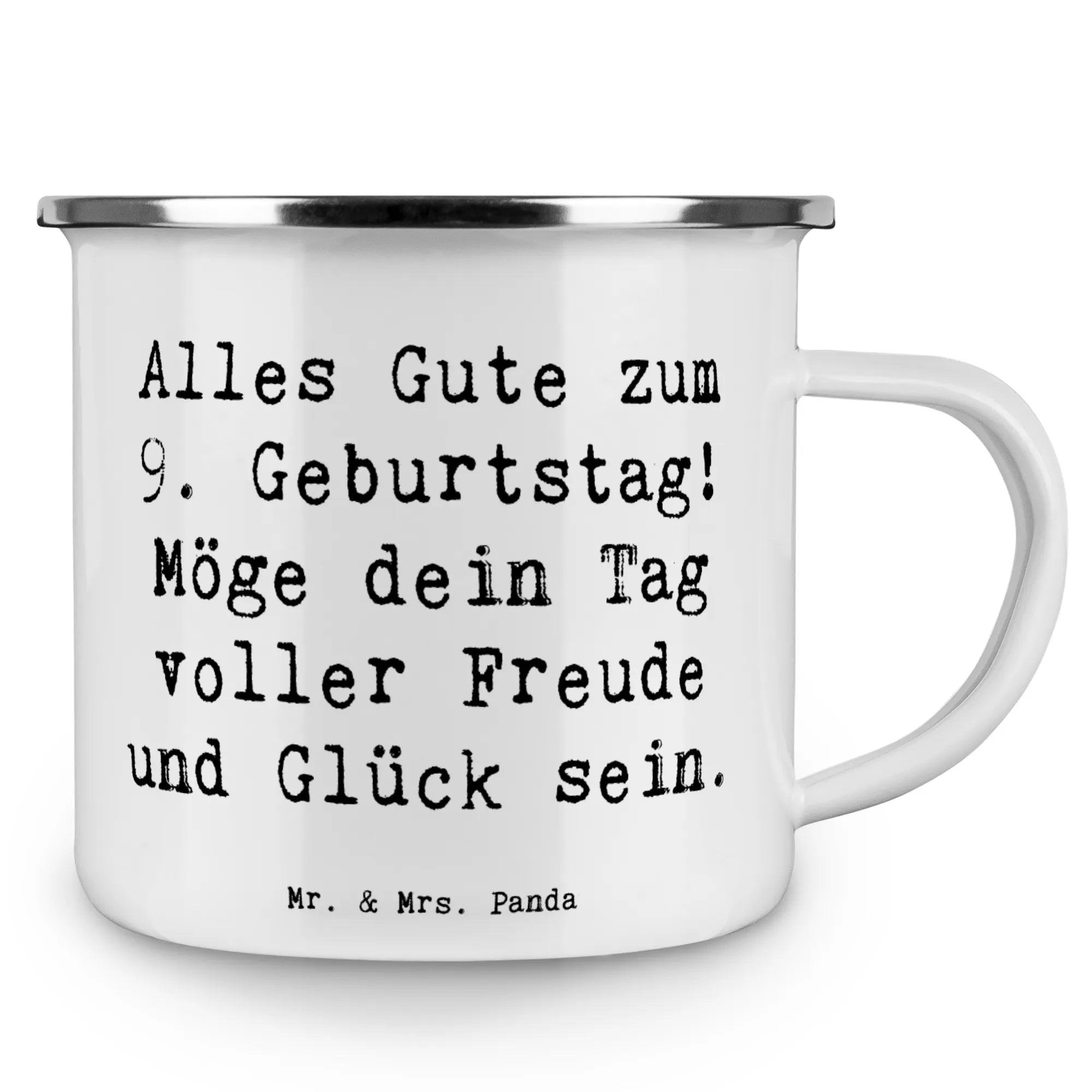 Die Camping Emaille Tasse zum 9. Geburtstag von Mr. & Mrs. Panda ist das perfekte Geschenk, um diesen besonderen Tag unvergesslich zu machen! Mit einem liebevoll gestalteten Motiv und dem Slogan 'Alles Gute zum 9. Geburtstag! Möge dein Tag voller Freude und Glück sein.' ist diese Tasse nicht nur ein wunderschönes Accessoire für jeden Geburtstagskind, sondern auch ein praktischer Begleiter für all deine Abenteuer im Freien. Ob beim Camping mit Freunden, beim Picknick im Park oder einfach beim entspannten Kaffeetrinken zu Hause – diese Emaille Tasse ist ein echtes Highlight.