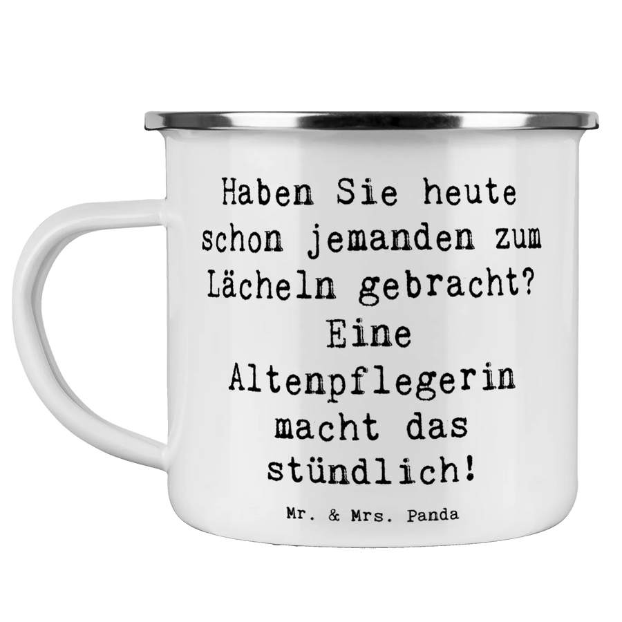 Camping Emaille Tasse Spruch Altenpflegerin Lächeln