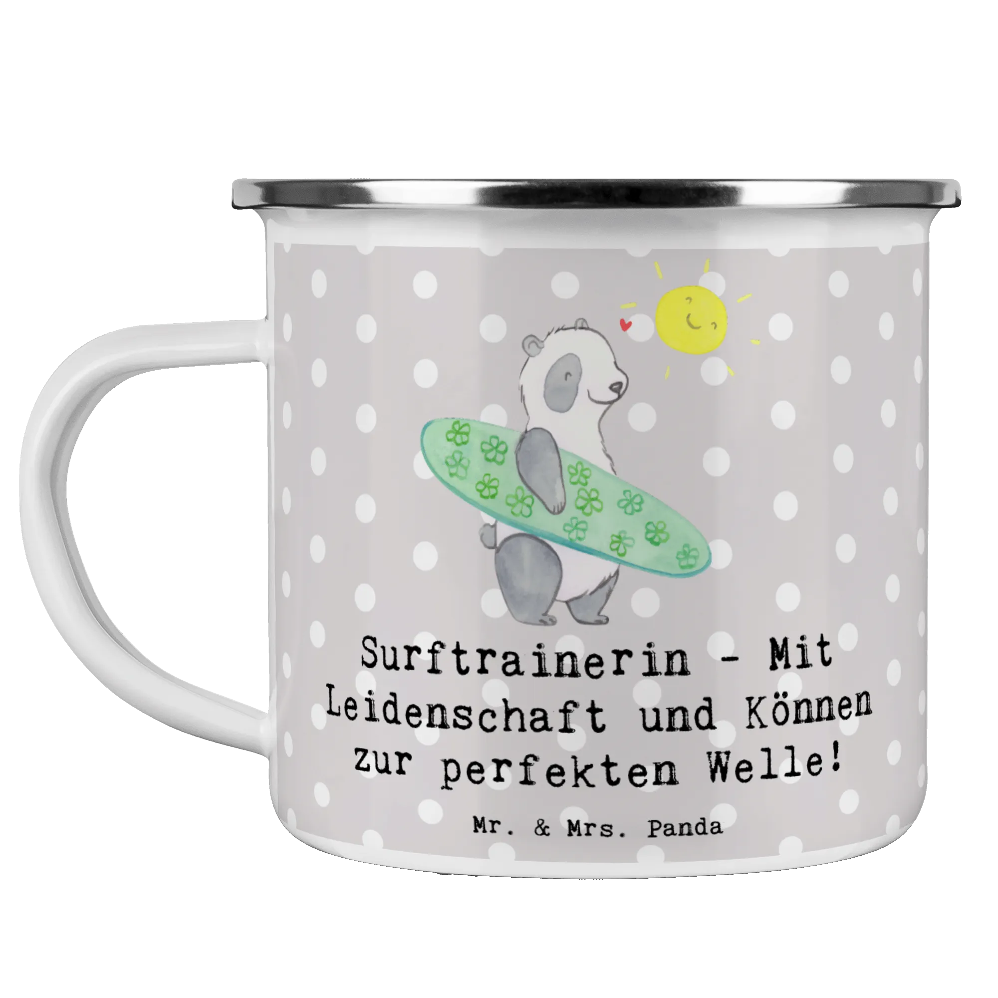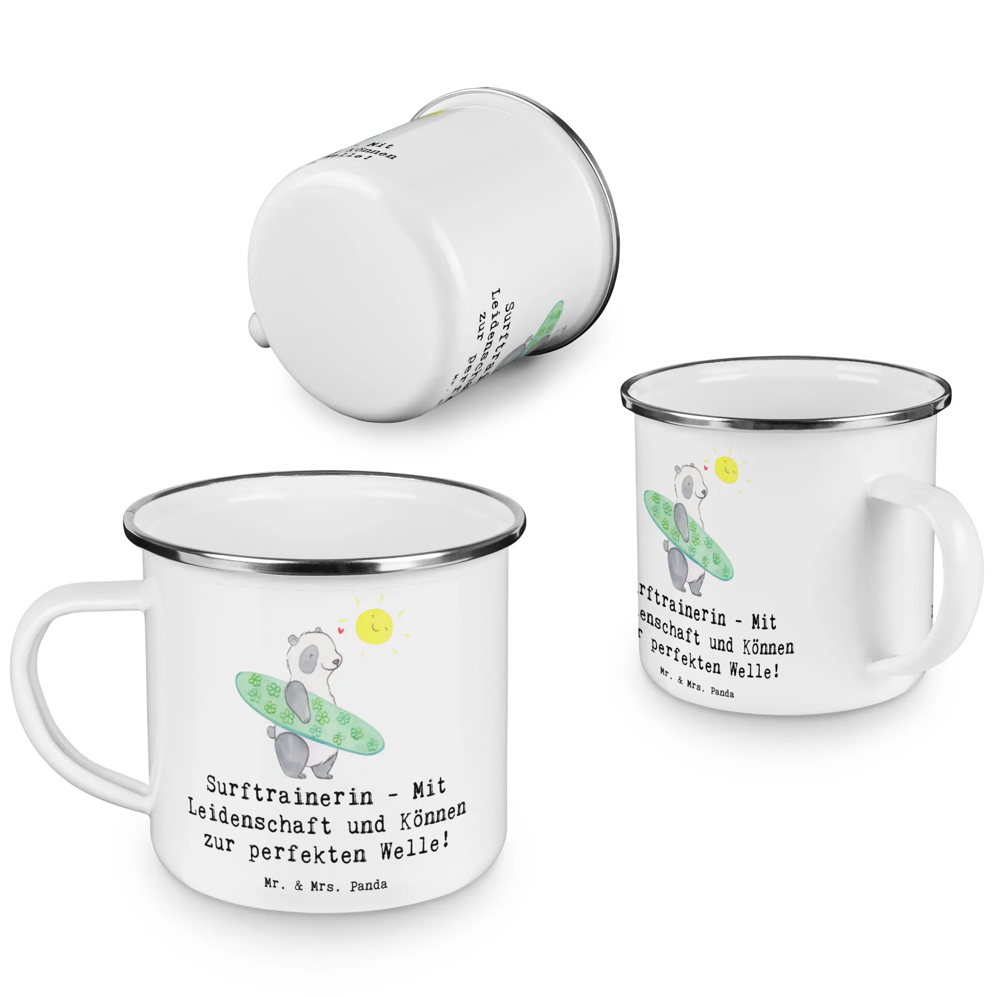 Entdecke die perfekte Camping Emaille Tasse für Trainerinnen! Diese wunderschöne und beständige Camping Emaille Tasse von Mr. & Mrs. Panda begeistert mit ihrem einzigartigen Motiv "Surftrainerin - Mit Leidenschaft und Können zur perfekten Welle!" und ist ideal für all deine Abenteuer in der Natur. Egal, ob beim Camping, Wandern oder einfach beim entspannten Sitzen am Lagerfeuer – diese Tasse ist der perfekte Begleiter.
