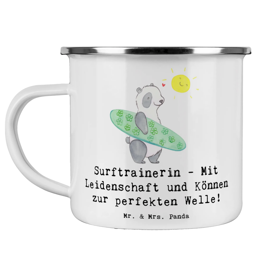 Bist du auf der Suche nach dem perfekten Geschenk für deine liebe Trainerin? Unsere wunderschöne Camping Emaille Tasse mit dem Motto "Surftrainerin - Mit Leidenschaft und Können zur perfekten Welle!" ist die ideale Wahl!