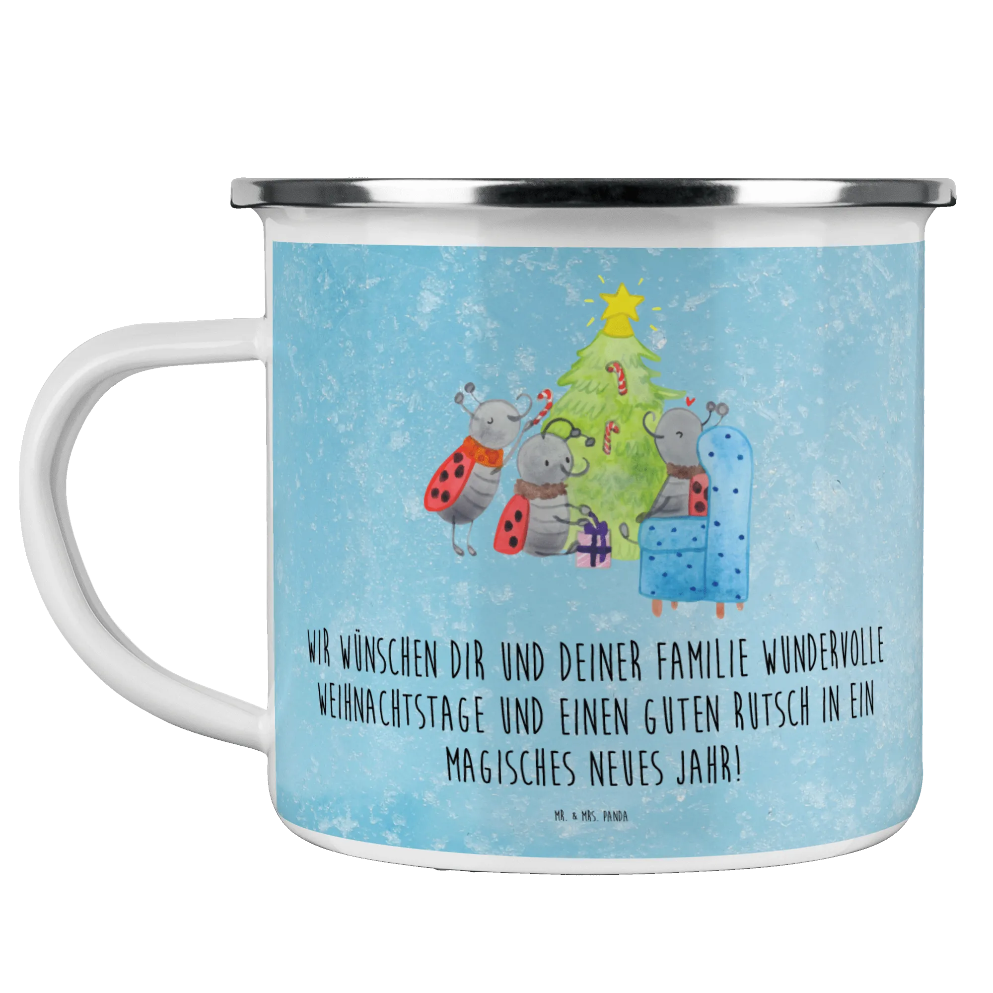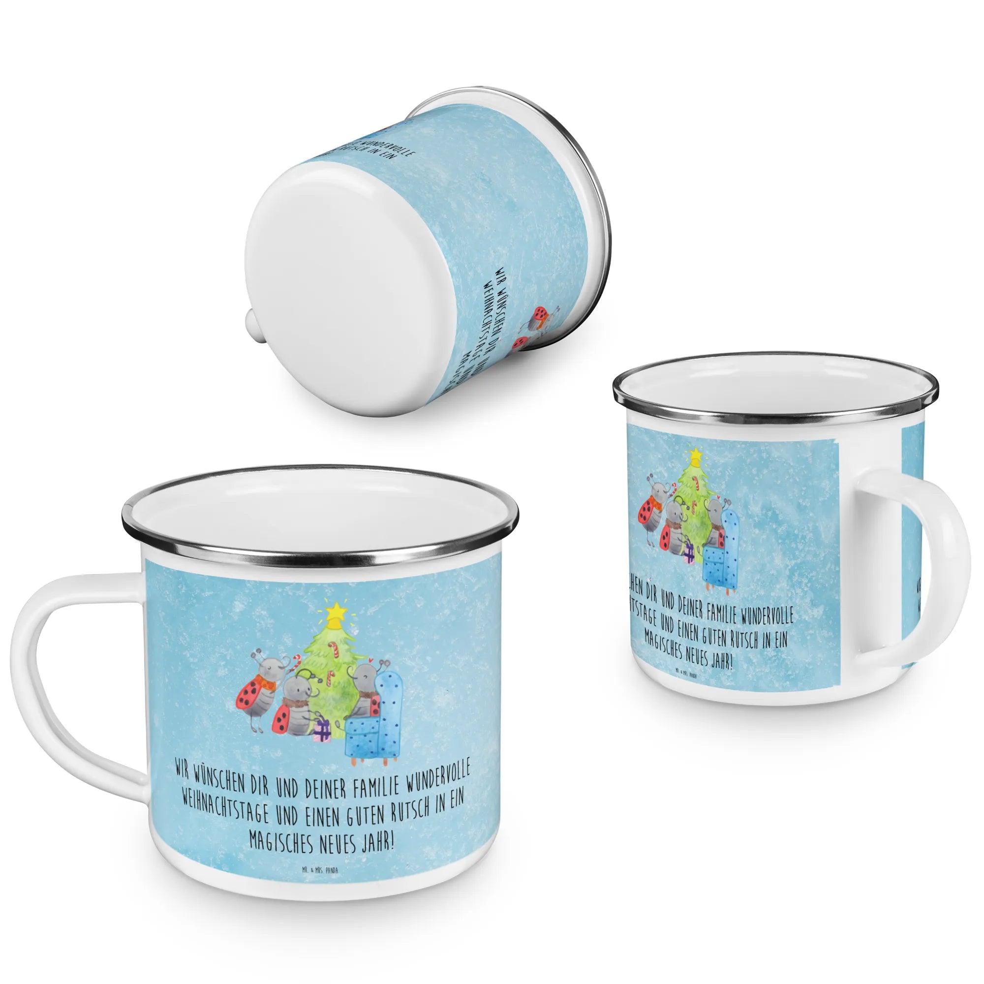 Mit einem mit Liebe gestalteten Motiv, das drei fröhliche Marienkäfer zeigt, die einen prächtigen Weihnachtsbaum schmücken, bringt diese Tasse eine Portion Freude und Gemütlichkeit in dein Zuhause. Die Tasse hat eine Füllmenge von 300 ml und ist aus kratzfester Emaille, was bedeutet, dass sie extrem widerstandsfähig ist und auch den rauen Bedingungen beim Campen standhält.