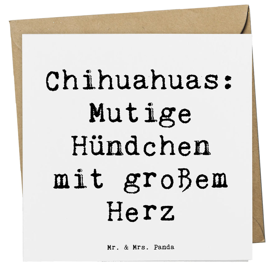 Die Deluxe Karte Chihuahua von Mr. & Mrs. Panda ist das perfekte Geschenk für alle, die kleine, mutige Hunde lieben! Diese wunderschöne und hochwertige quadratische Karte misst 140 mm x 140 mm und wird aus 300 Gramm schwerem Karton gefertigt. Mit ihrem entzückenden Chihuahua-Motiv und dem liebevollen Spruch "Chihuahuas: Mutige Hündchen mit großem Herz" ist sie ideal, um Deine herzlichsten Glückwünsche zu übermitteln.