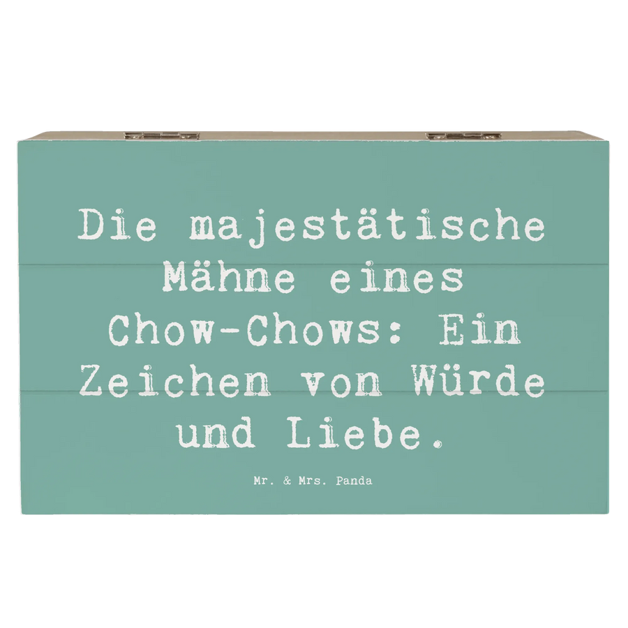 Entdecke die perfekte Holzkiste von Mr. & Mrs. Panda, die nicht nur wunderbar aussieht, sondern auch ein wahres Aufbewahrungstalent ist! Diese Kiste ist mit dem charmanten Motiv eines Chow-Chows verziert und trägt den Slogan: "Die majestätische Mähne eines Chow-Chows: Ein Zeichen von Würde und Liebe." Sie ist ideal, um all jene besonderen Schätze und Erinnerungen zu speichern, die dir am Herzen liegen.
