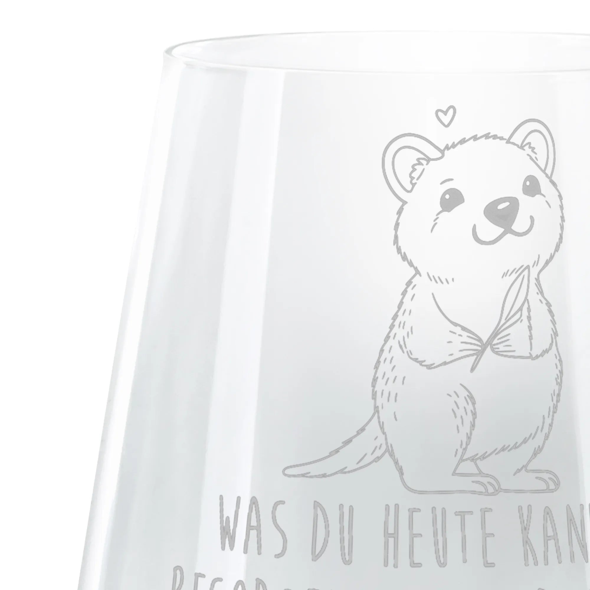 Mit einem fesselnden Motiv eines niedlichen Quokkas, das mit einem herzlichen Lächeln und einem grünen Blatt in den Pfoten strahlt, bringt dieses Glas Leben auf jede Party! Egal ob für Freunde, Familie oder als kleines Mitbringsel für Kollegen, dieses Glas ist sowohl praktisch als auch ein wahrer Hingucker.