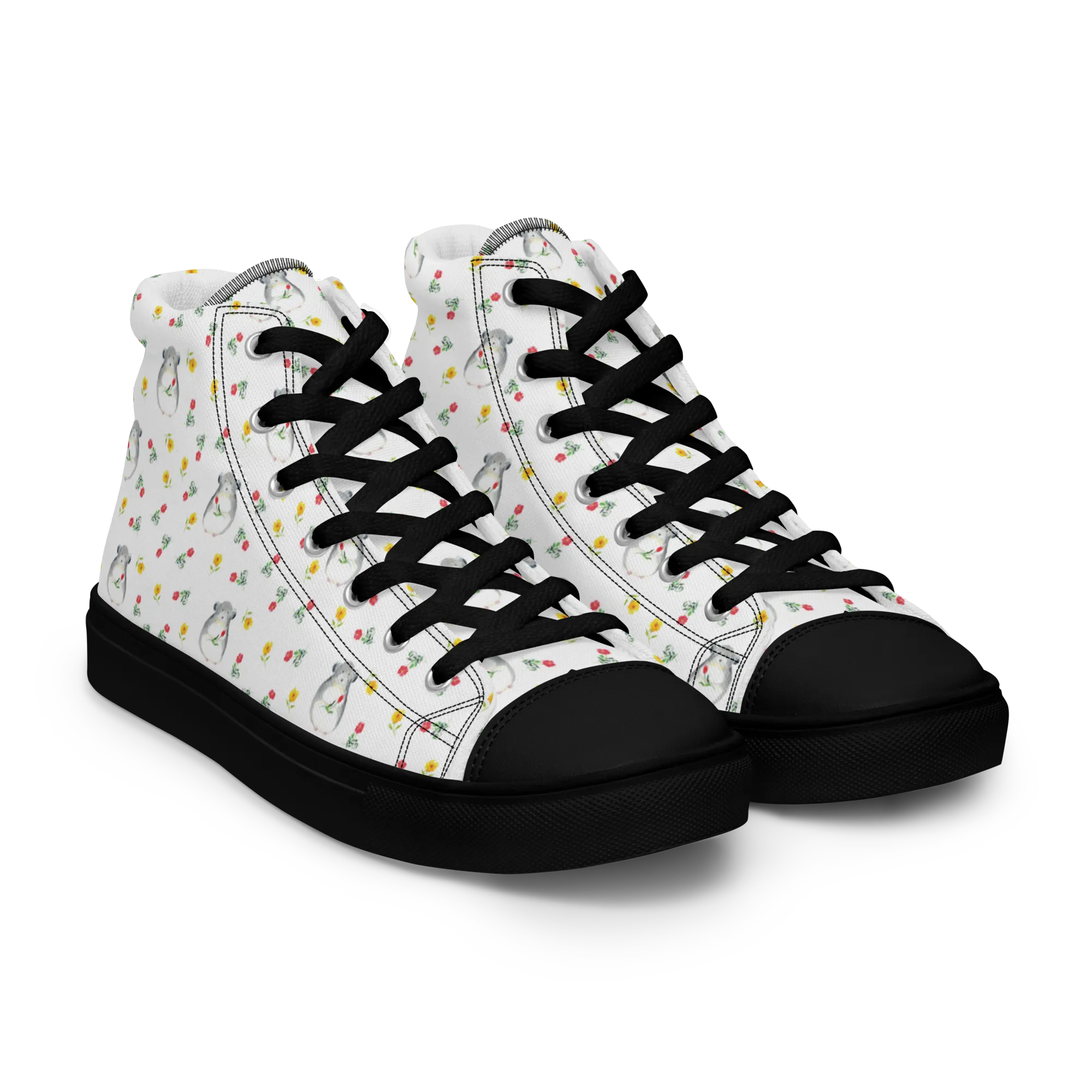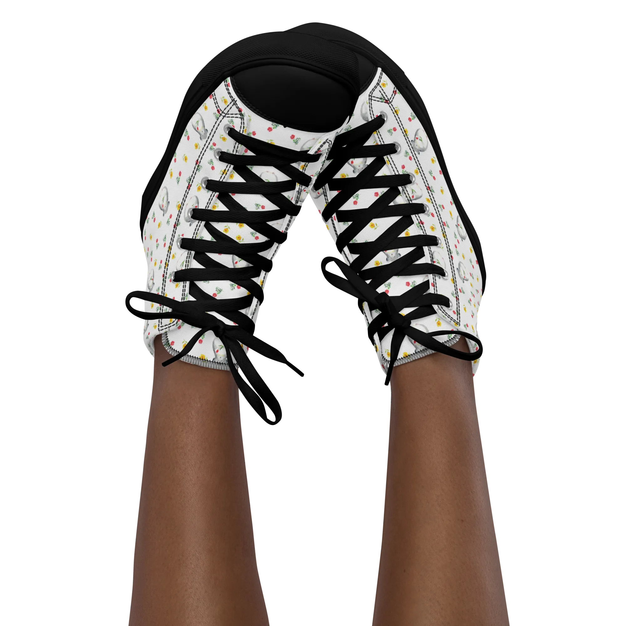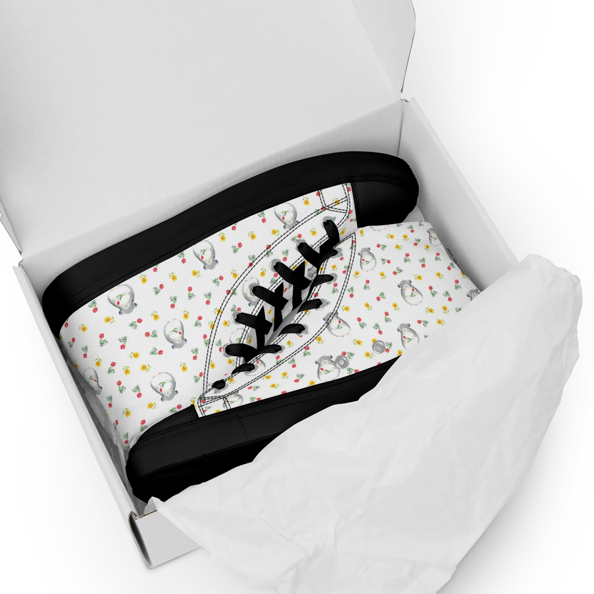 Die schwarze Sohle und die schwarze Zehenkappe geben dem Schuh einen modernen, klaren Look, während das handgezeichnete Aquarellmotiv für Wärme und Persönlichkeit sorgt. Die High-Top-Form verleiht Retro-Charme, die leichte Gummisohle und abnehmbare Innensohle sorgen für angenehmen Tragekomfort. Ideal für Büro, Freizeit oder das Treffen mit Freundinnen – diese Sneaker sind vielseitig kombinierbar und immer ein Hingucker. 👟