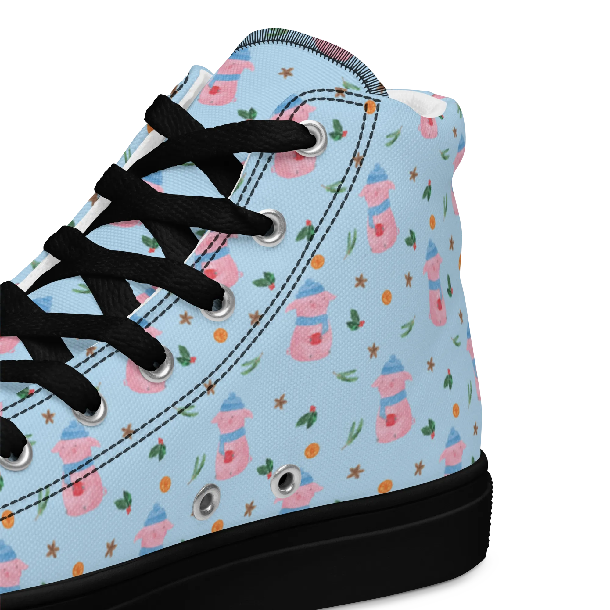 Damen Sneaker Black Edition Schweinchen Glühwein Muster - Größe 35 1/2