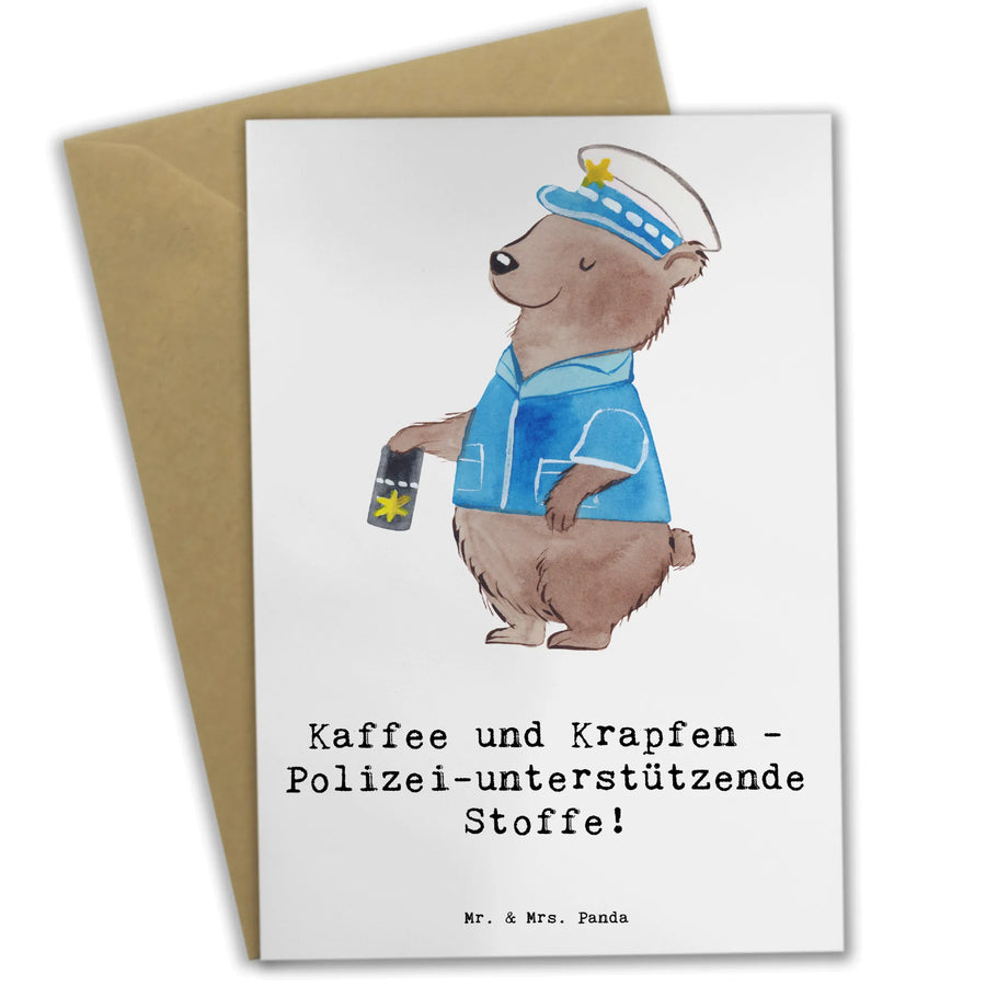 Grußkarte Polizist Kaffee Krapfen - Weiß