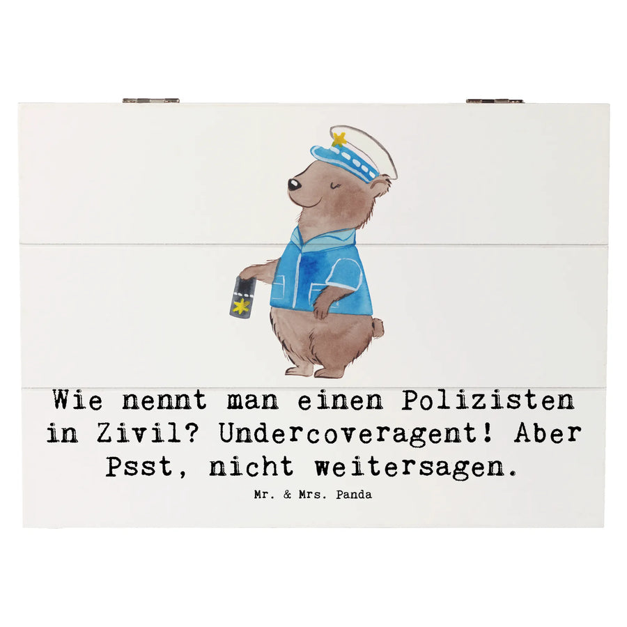 Die Holzkiste "Polizist" von Mr. & Mrs. Panda ist das perfekte Geschenk für alle, die sich für den Beruf des Polizisten begeistern. Diese wunderschöne und stabile Kiste ist nicht nur praktisch, sondern auch ein echter Blickfang. Mit dem witzigen Spruch "Wie nennt man einen Polizisten in Zivil? Undercoveragent! Aber Psst, nicht weitersagen." bringt sie Freude in den Alltag eines jeden Polizeibeamten oder Polizeibeamtin.