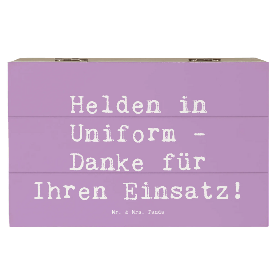 Entdecke die wunderschöne Holzkiste von Mr. & Mrs. Panda, die besonders für alle Helden in Uniform gedacht ist! Mit dem liebevollen Spruch "Helden in Uniform - Danke für Ihren Einsatz!" auf der Oberfläche ist diese Kiste nicht nur ein ganz besonderer Blickfang, sondern auch eine wunderbare Möglichkeit, Dankbarkeit zu zeigen. Perfekt geeignet als Geschenk für Polizisten, Feuerwehrleute oder andere Berufsretter, ist diese Kiste ideal für zahlreiche Anlässe: Ob zur Verabschiedung, zum Geburtstag oder einfach als kleine Aufmerksamkeit zwischendurch, sie kommt immer gut an!