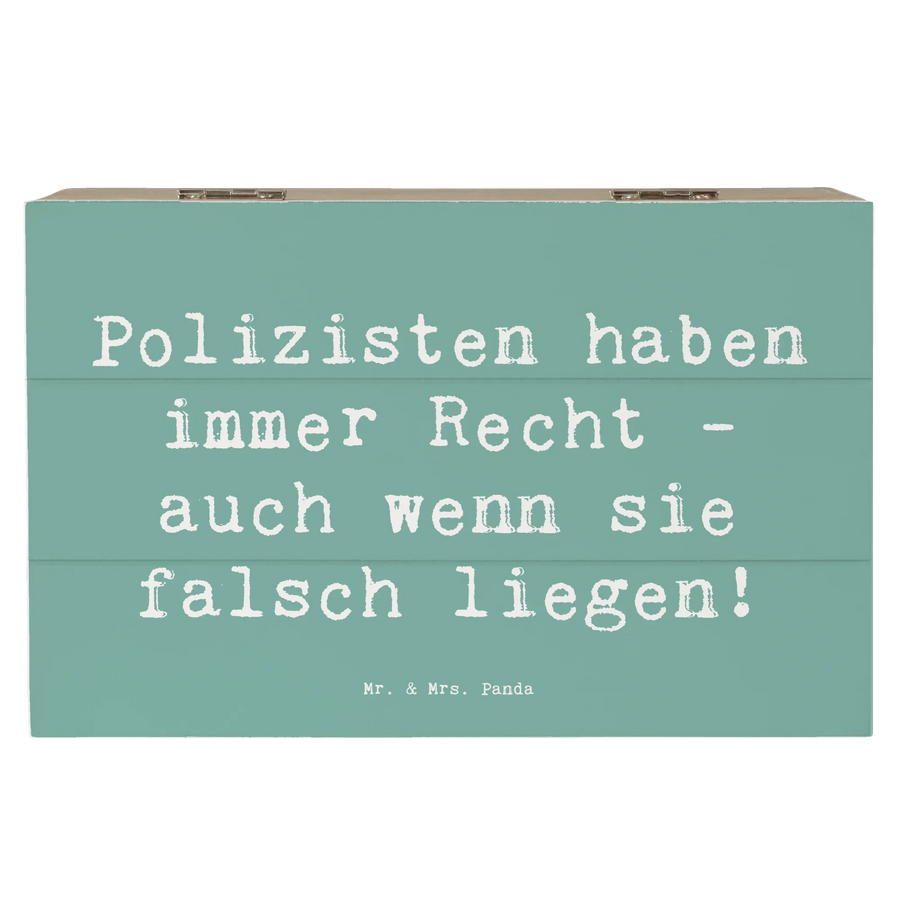 Die wunderschöne Holzkiste von Mr. & Mrs. Panda mit dem witzigen Motiv "Polizisten haben immer Recht - auch wenn sie falsch liegen!" ist das perfekte Geschenk für alle Polizeibeamten und ihre Freunde. Egal ob zum Berufsjäubileum, zur Beförderung oder einfach nur als nette Aufmerksamkeit - diese Schatzkiste lässt Herzen höherschlagen! Mit handgezeichneten Motiven aus der kreativen Berufe Kollektion bringen wir die Leidenschaft für den Beruf auf liebevolle Art zum Ausdruck.