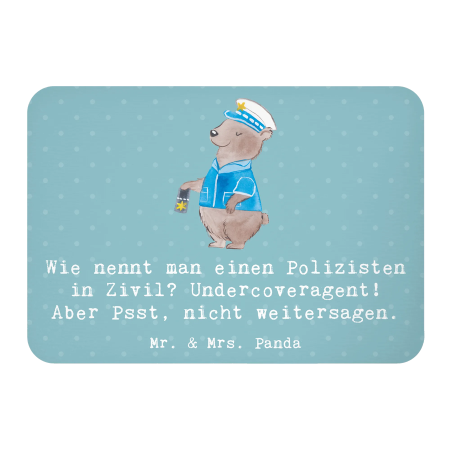Der Mr. & Mrs. Panda Kühlschrankmagnet im Design Polizist ist das perfekte Geschenk für alle, die ihren Beruf mit Stolz tragen! Ob als kleiner Scherz für den Polizisten in deinem Freundeskreis oder als ein liebevolles Geschenk zum Berufsstart oder zum Dienstjubiläum – dieser Magnet bringt nicht nur Farbe an den Kühlschrank, sondern auch ein Lächeln in den Alltag. Mit dem witzigen Spruch: 'Wie nennt man einen Polizisten in Zivil? Undercoveragent! Aber Psst, nicht weitersagen.' sorgt er für guten Humor und hebt die Laune.